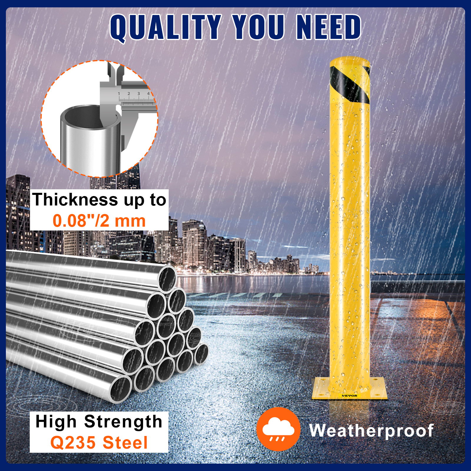 Raskas, hitsattu teräsrakenne on pitkäikäinen, UV-säätä kestävä ja vedenpitävä, tarjoten kestävää suojaa iskuja vastaan.