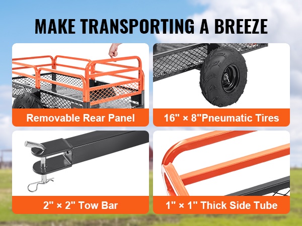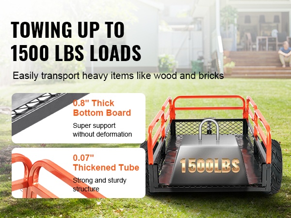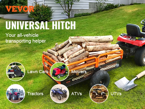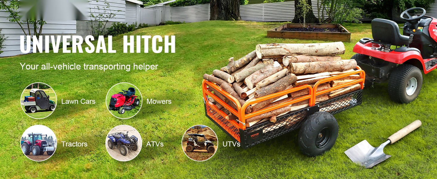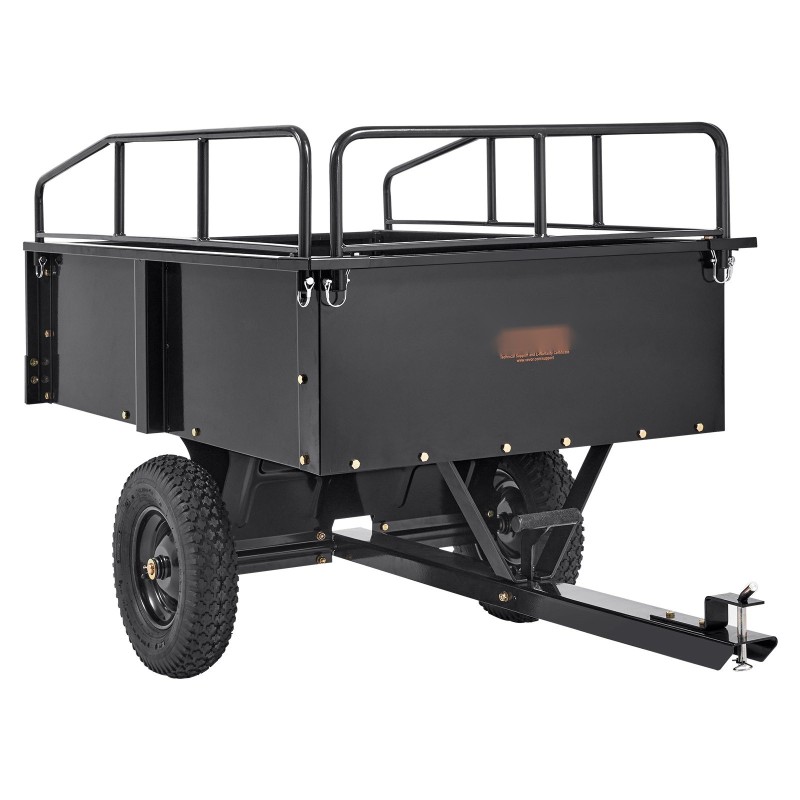 Tämä teräksinen kippikärry helpottaa raskaiden kuormien siirtämistä pihalla, puutarhassa ja maatilalla. Se voidaan kiinnittää useimpiin ajoleikkureihin, pieniin traktoreihin ja mönkijöihin yleiskiinnitteisen vetolaitteen avulla.