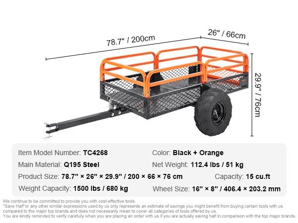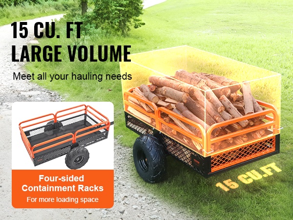 Peräkärryn tilavuus on 15 cu.ft (noin 0.43 m³), joten maa-ainekset, puutavara ja sekalainen puutarhajäte kulkevat kerralla isompina kuormina. Tämä vähentää edestakaisia ajokertoja ja säästää aikaa.