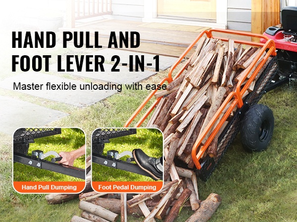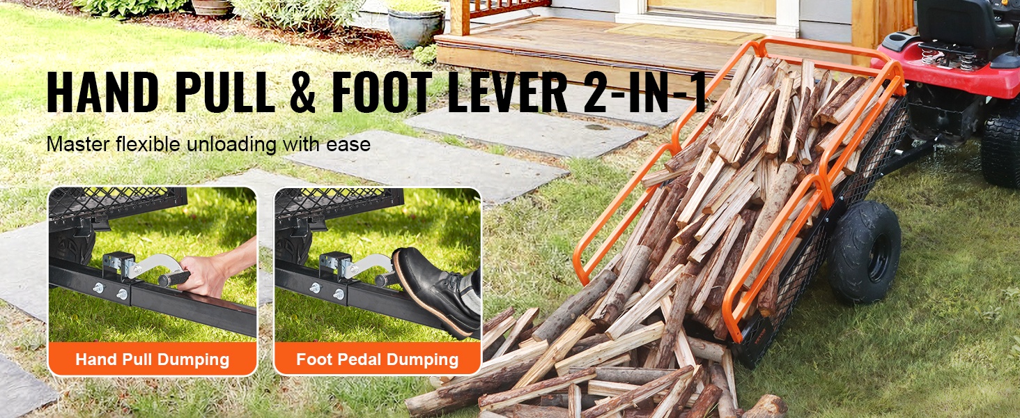 Kaksitoiminen kippausjärjestelmä mahdollistaa lavan tyhjennyksen joko käsivivulla vetäen tai jalkapolkimella painaen. Kun kuljetus on tehty, kuorman voi kaataa valittuun paikkaan nopeasti ja hallitusti.