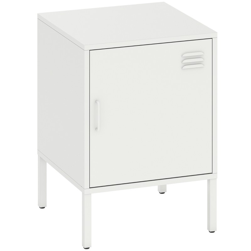 Teräksinen yöpöytä ja sivukaappi säädettävällä hyllyllä, 40 x 40 x 56 cm, valkoinen