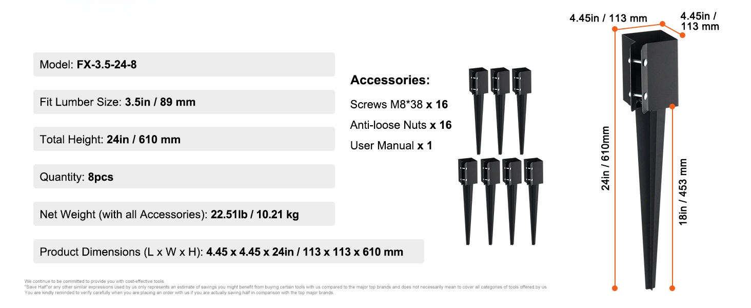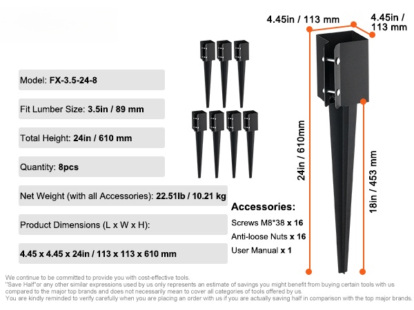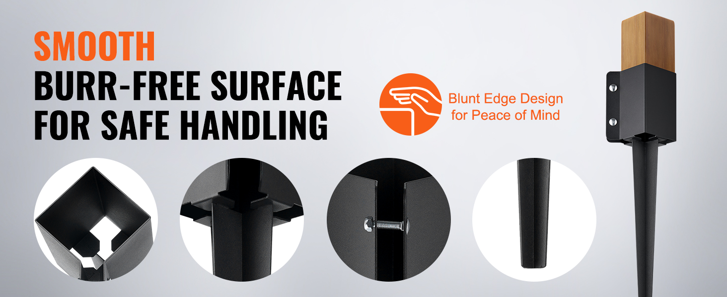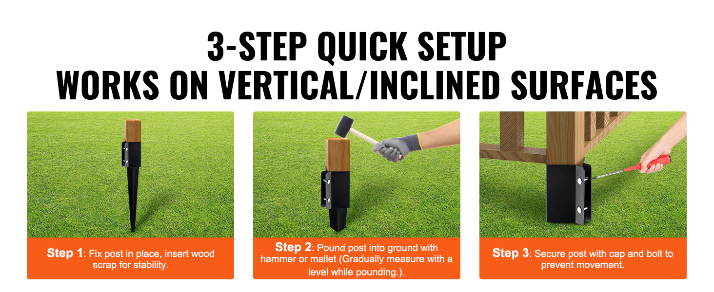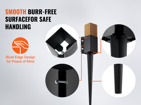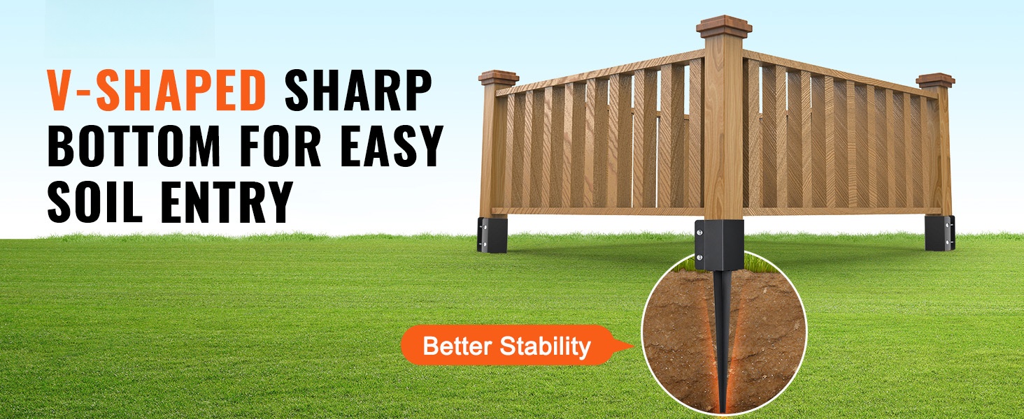 Nämä maapiikit helpottavat aita- ja tolpparakenteiden pystytystä ilman kaivamista tai betonia. Korkealujuuksinen teräs ja musta korroosionkestävä jauhemaalipinnoite on suunniteltu kestämään vaihtelevia sääolosuhteita, kuitenkin tuotteen käyttöikä ja kestävyys riippuvat käyttöympäristöstä ja sääaltistuksesta.
