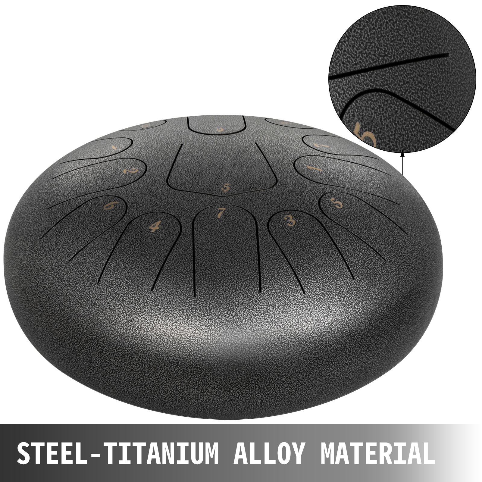 Teräskielirumpu teräs-titaani-seos 12-tuumainen 13-sävelinen C-duuri tummanharmaa sisältää kapulat telineen ja pehmustetun