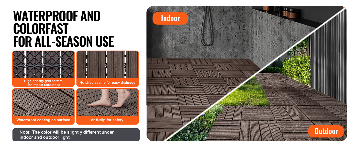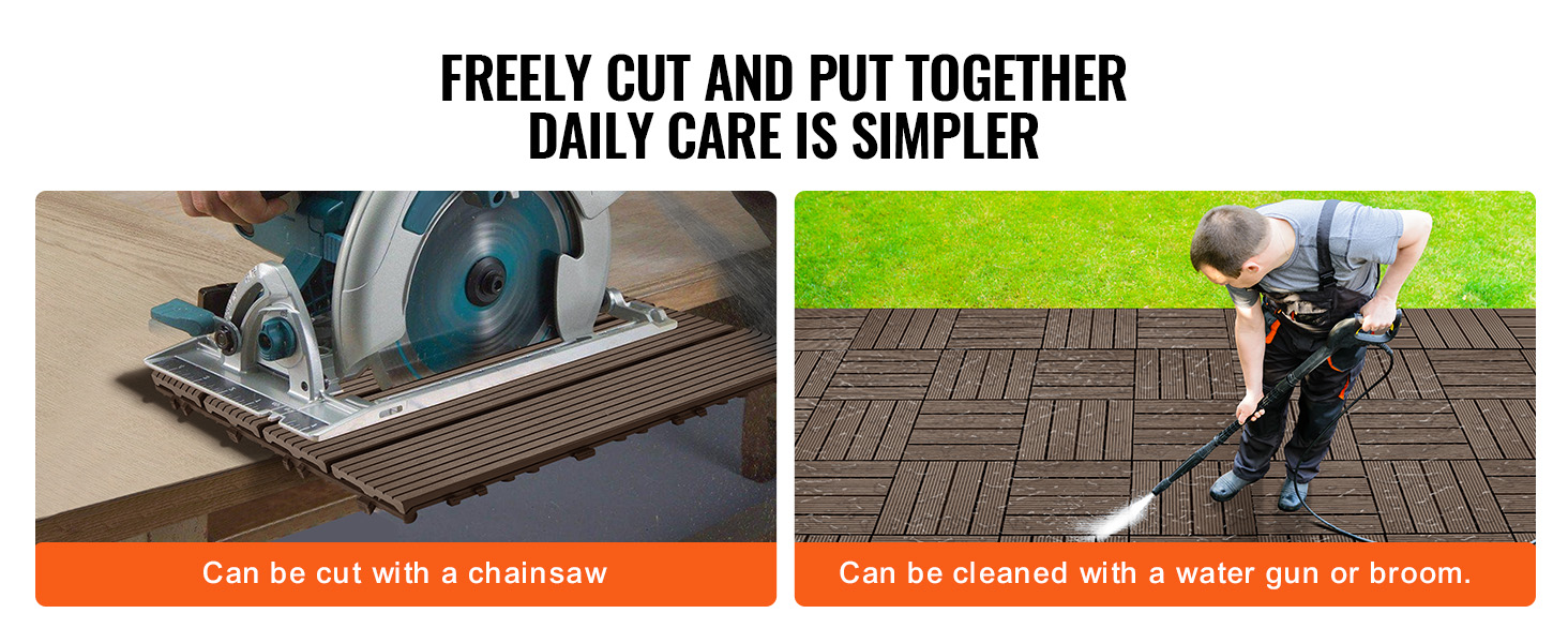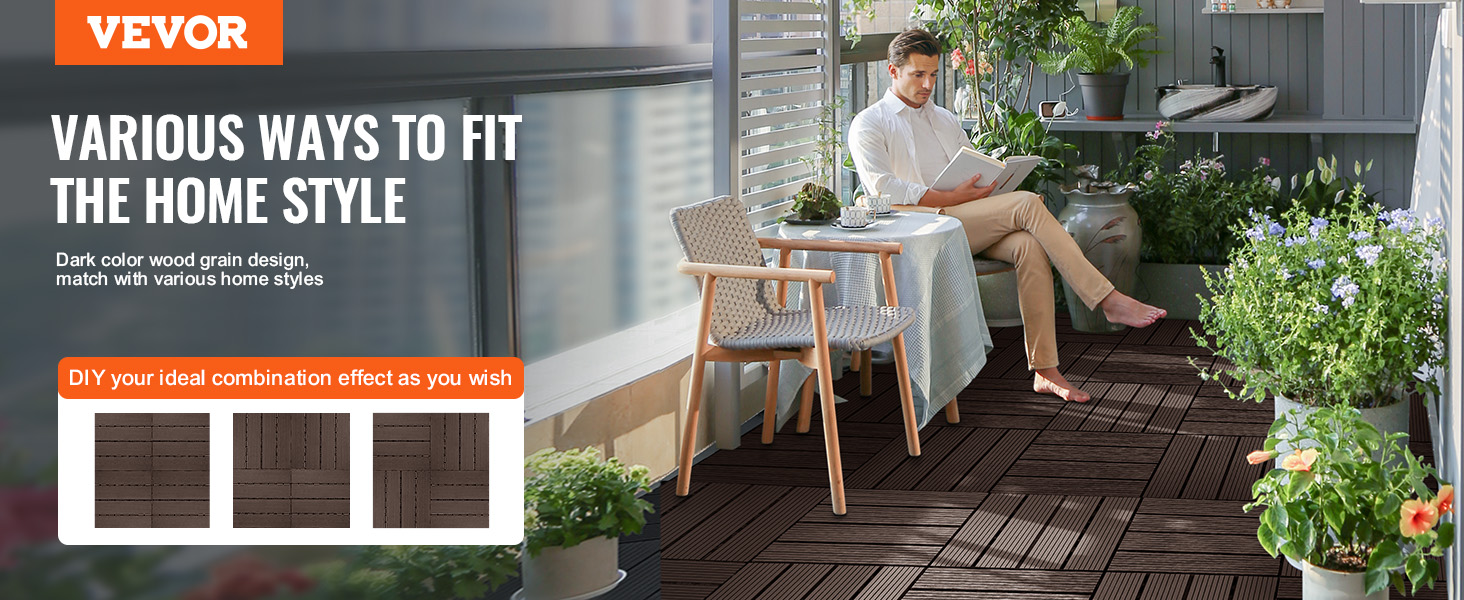 Näillä neljästä puukuviollisesta palasta koostuvilla laatoilla voit luoda erilaisia kuvioita ja sovittaa pinnan terassille, parvekkeelle, altaan reunalle, kuistille tai esimerkiksi lasitettuun parvekkeeseen. Ne sopivat myös sisätiloihin, kuten pesuhuoneeseen tai kodinhoitohuoneeseen, kun halutaan mukavampi ja lämpimämpi tuntuma jaloille.