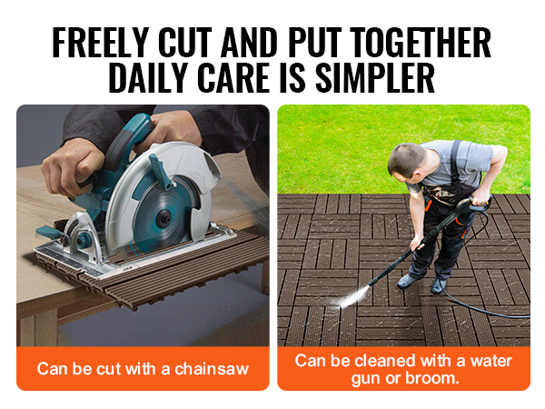 Laatat napsautetaan toisiinsa ilman työkaluja; tarvittaessa ne voidaan leikata sähköisellä sahalla sopimaan kulmiin.
