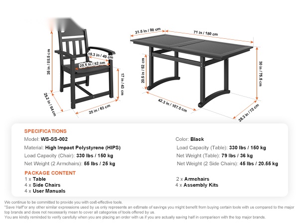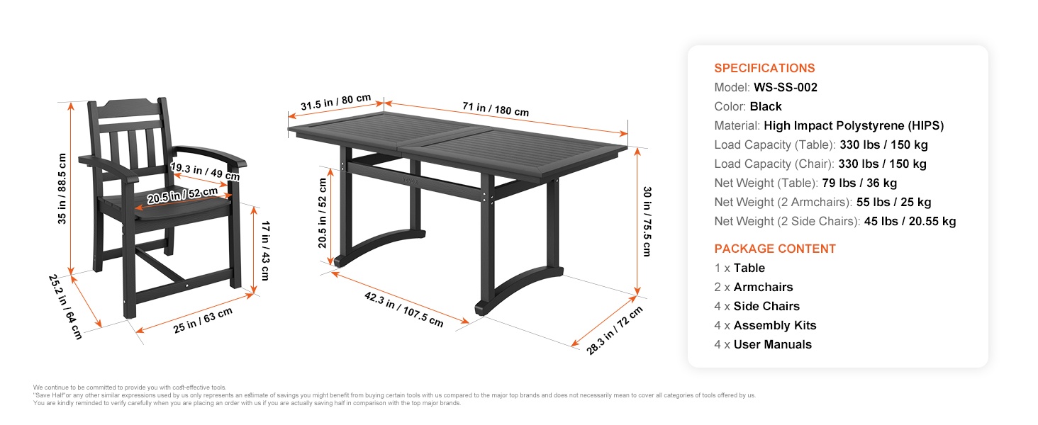 | Nettopaino (2 sivutuolia) | 45 lbs / 20.55 kg |