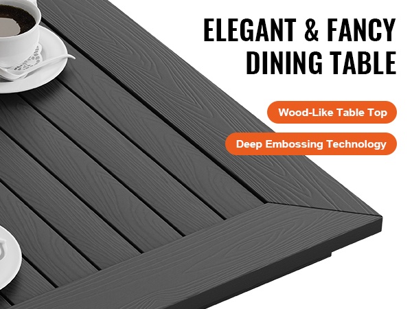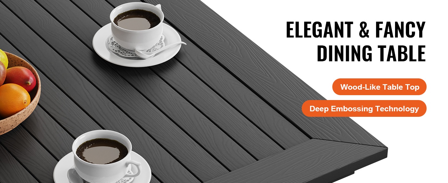 Pöydän syvä kohokuviointi luo selkeän pinnan, joka muistuttaa puuta ja tuo ulkotilaasi viimeistellyn, huolitellun ilmeen.
