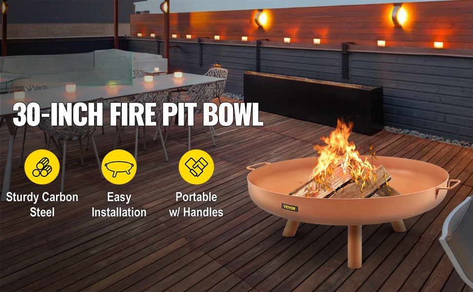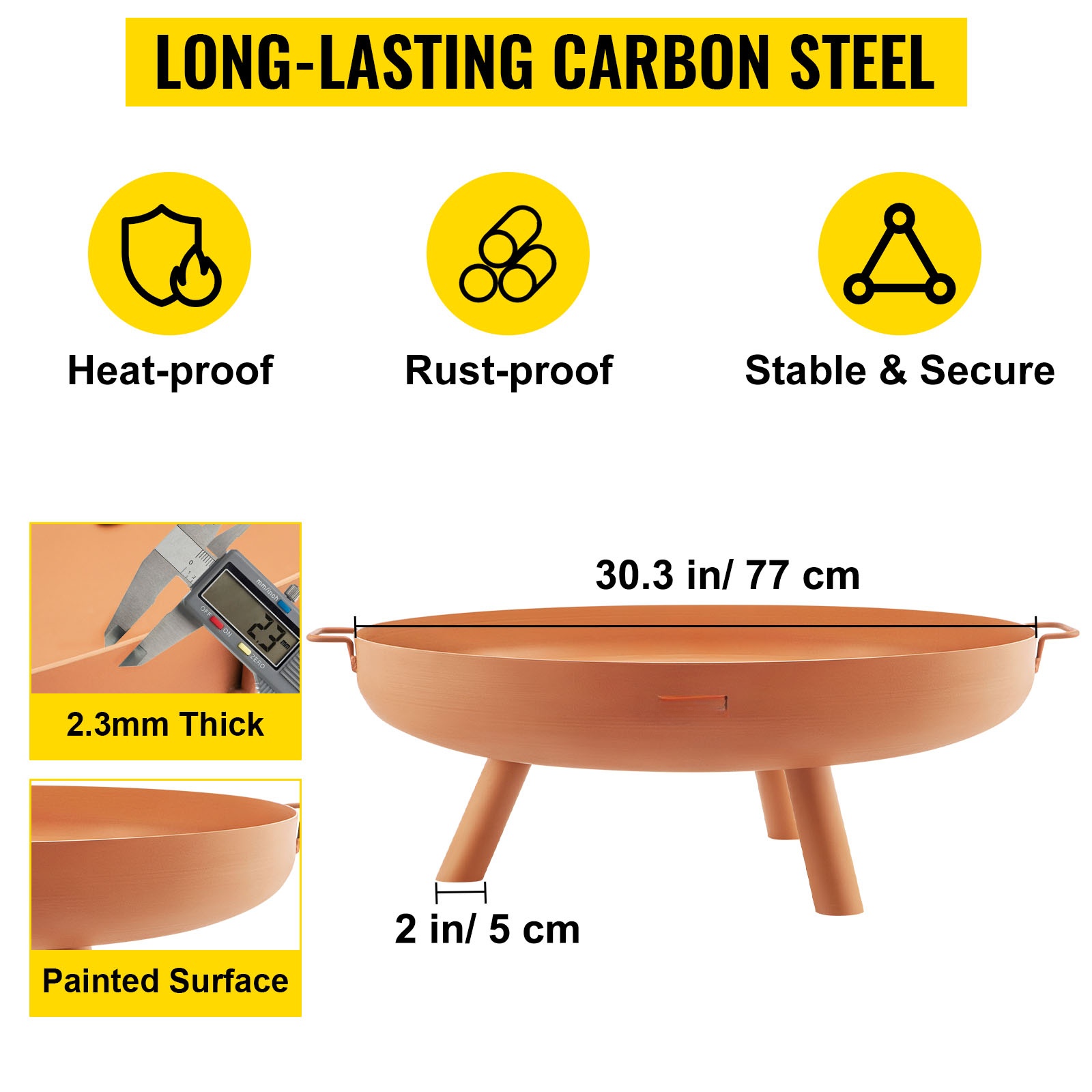 Teräksinen pyöreä tulipesä ulkokäyttöön terassille, puutarhaan, pihalle tai leirintään. Kulho on valmistettu maalatusta hiiliteräksestä, jonka paksuus on 2.3 mm, ja se on suunniteltu ulkokäyttöön sääolosuhteet huomioiden sekä kestämään hyvin lämpöä. Kätevät kantokahvat helpottavat siirtämistä, ja mukana tulevalla polttopuusauvalla voit säätää puita turvallisesti.Keskeiset ominaisuudet: