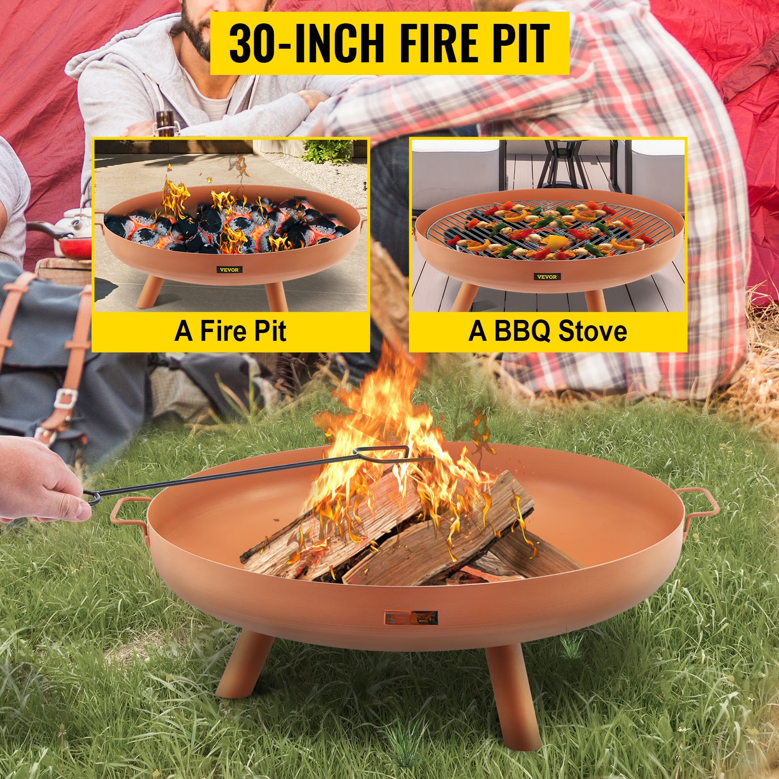 Terästulipesäkulho VV-FPB-30BN, pyöreä, Ø 77 cm, puupoltto, kantokahvat, vedenpoistoaukko, polttopuusauva