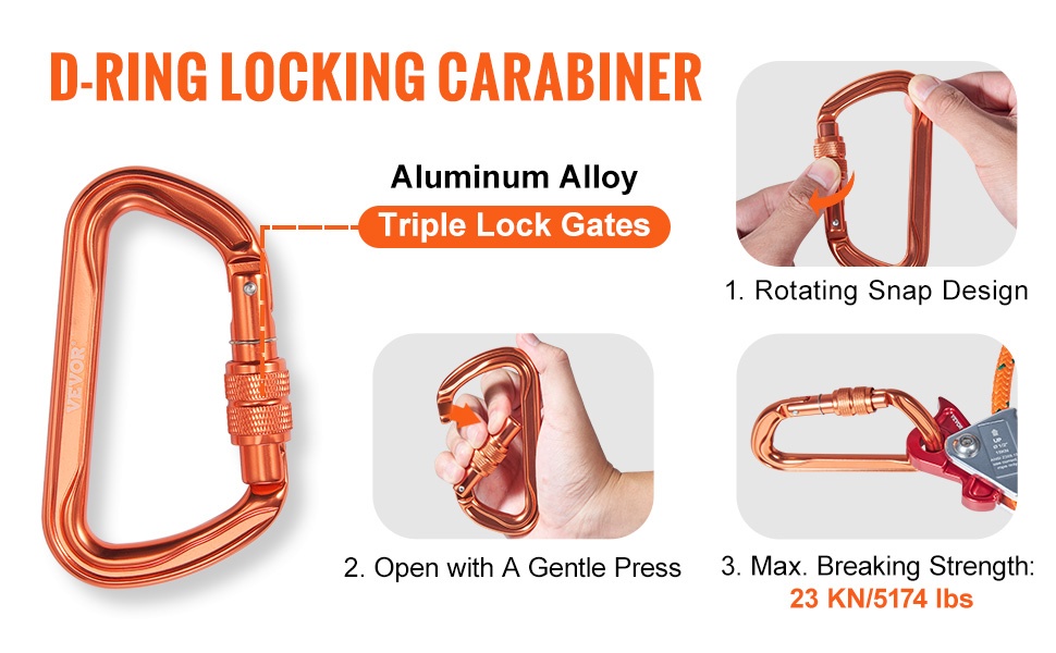 Mukana tuleva alumiiniseoksesta valmistettu sulkurengas tarjoaa tukea ja vakautta murtolujuudellaan 23 kN (5174 paunaa). 3-suuntainen lukitusmekanismi lukittuu nopeasti ja mahdollistaa silti sulkurenkaan avauksen ja sulkemisen yhdellä kädellä, kun työskentelet puussa.