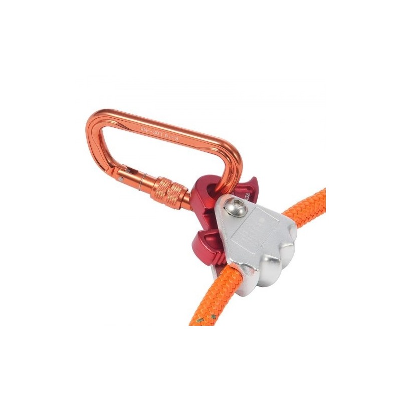 Alumiiniseoksesta valmistettu karabiini (murtolujuus 23 kN/5174 lbs) tarjoaa lisätukea ja -vakautta kiipeilyyn. 3-suuntainen lukitusmekanismi mahdollistaa nopean lukittumisen ja helpon, yhdellä kädellä tehtävän avauksen.