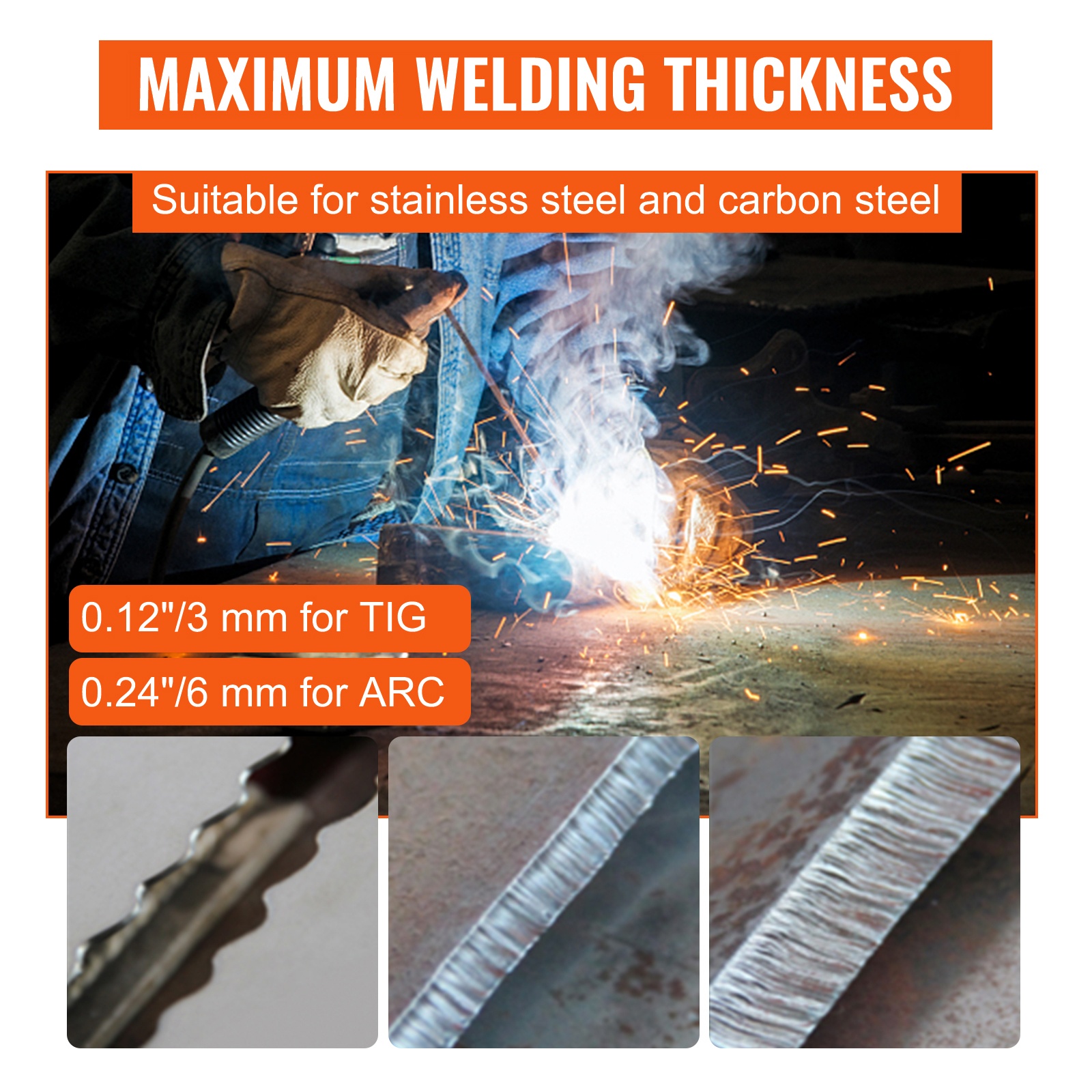 - MMA-elektrodin halkaisija: 1-4 mm (0.04-0.16 tuumaa)
