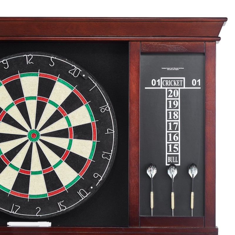 Tämä tikanheittolevy ja -kaappisetti sopii hyvin sekä rentoon ajanviettoon että kilpailuhenkiseen peliin. Virallisen kokoisella tikkataululla saat tasaisen ja miellyttävän pelikokemuksen, ja tyylikäs kaappi suojaa taulua sekä viimeistelee tilan ilmeen.