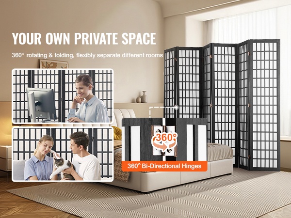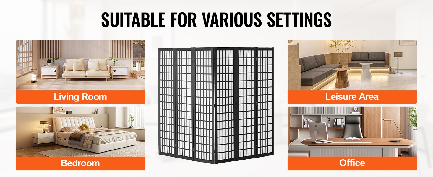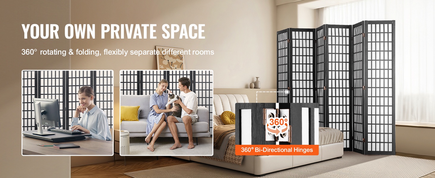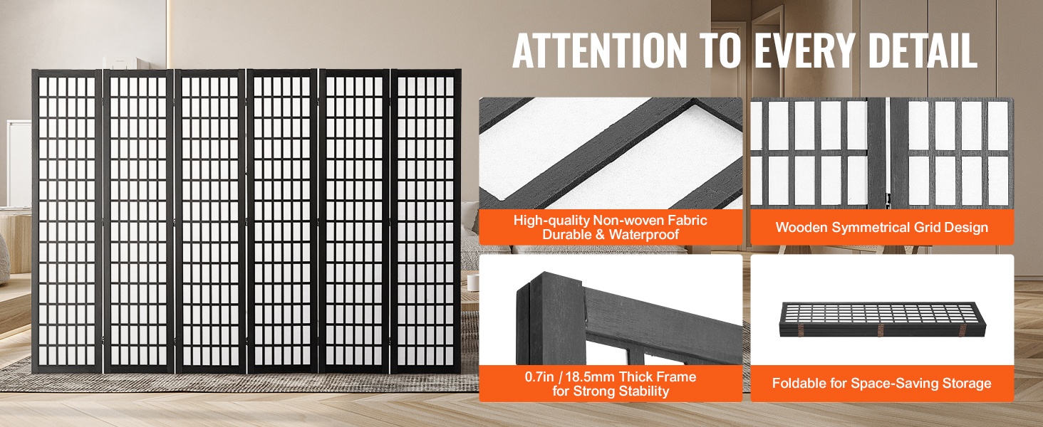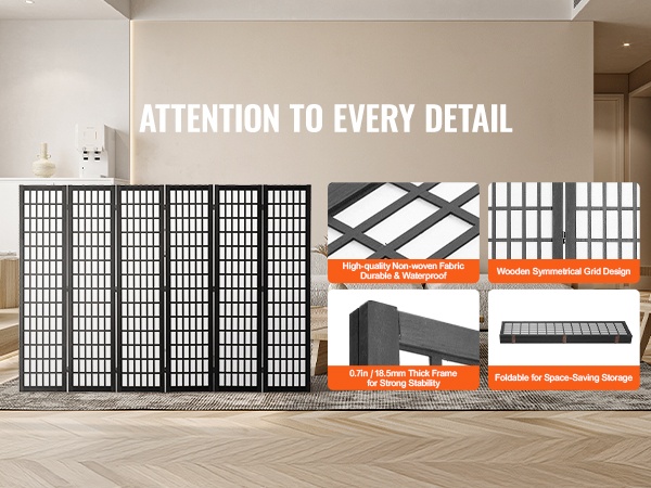 Tämä neliosainen tilanjakaja yhdistää japanilaisen minimalistisen muotoilun ja puusäleikön. Se kääntyy 360° ja taittuu helposti säilytystä varten. Kestävä massiivipuinen runko ja vedenpitävä, ei-kudottu kangas tuovat yksityisyyttä ja rauhallista ilmettä mihin tahansa tilaan, kuten olohuoneeseen, makuuhuoneeseen, työtilaan tai ravintolaan.