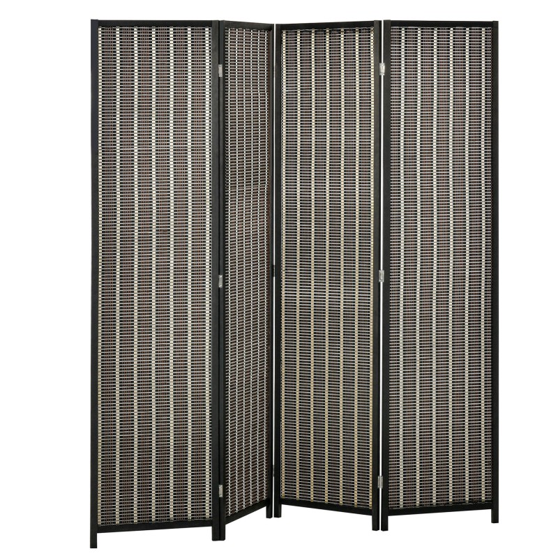 Tämä taittuva 4-osainen tilanjakaja auttaa luomaan rauhallisia, katseilta suojattuja alueita kotiin, toimistoon tai terassille. Korkea rakenne, luonnollinen mänty ja punottu bambu sekä ruskean ja mustan sävyt tekevät siitä tyylikkään osan sisustusta, samalla kun kevyt, kokoontaittuva malli on helppo siirtää ja säilyttää.