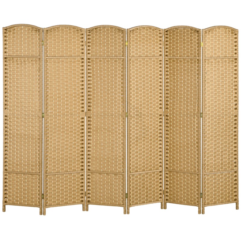 Tilanjakaja ja sermi kotiin, 6-paneelinen taitettava huoneenjakaja, polypropeeni ja mäntypuu, luonnonpuu, 240 x 170 cm