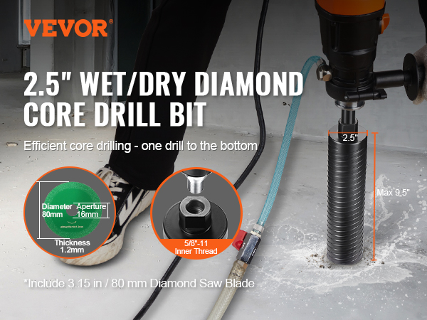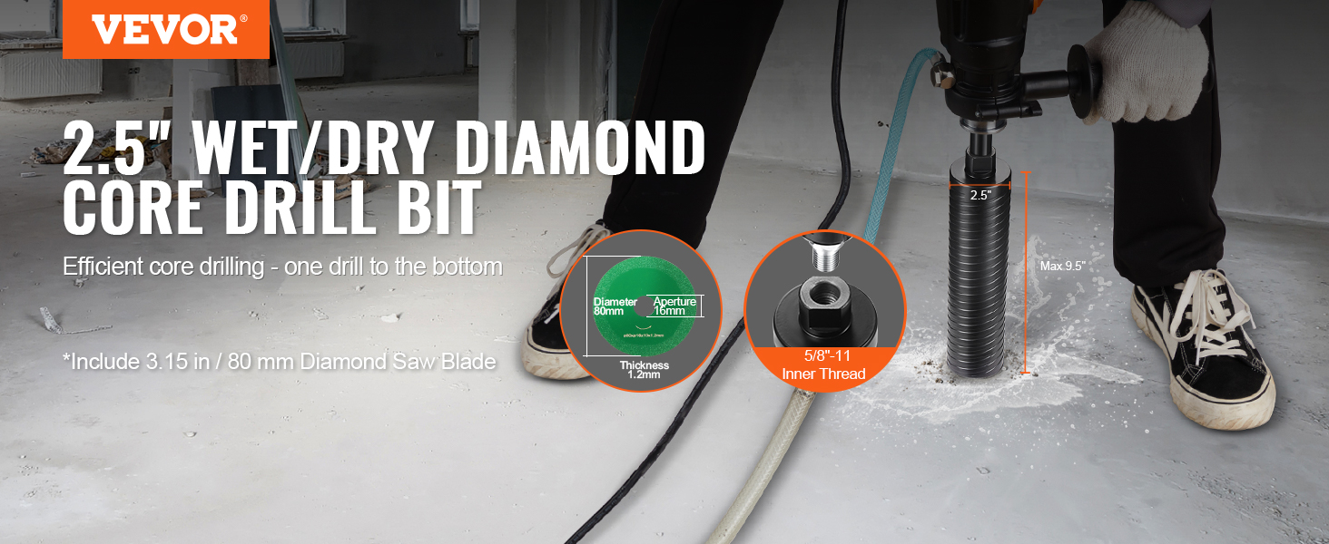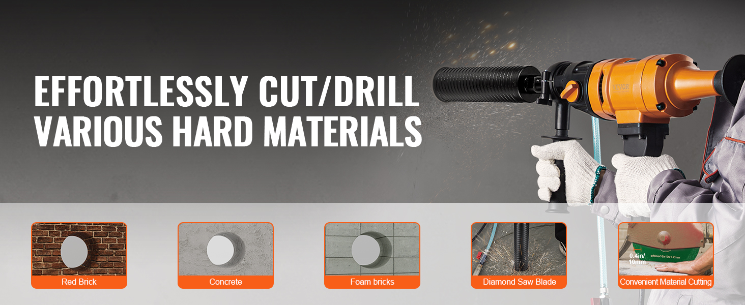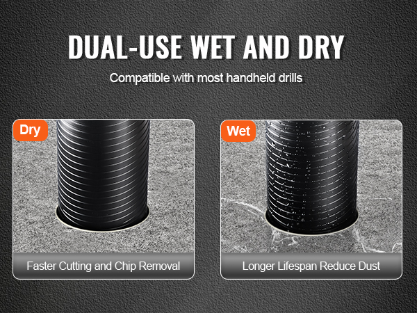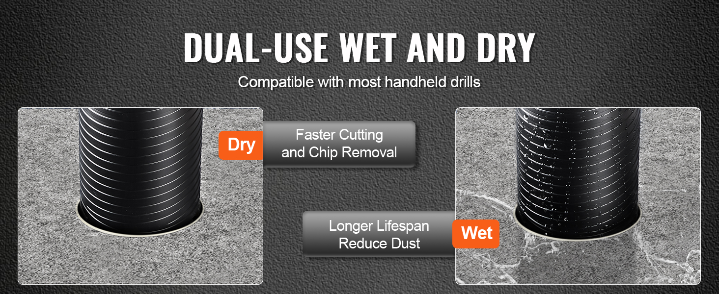 Märkä/kuiva-holkkiterällä saadaan siistit ja tarkat reiät vaativiin materiaaleihin, kuten punatiileen, betoniin ja kevytbetoniin. Mukana toimitettava timanttisahanterä mahdollistaa erilaisten materiaalien tarkan, tasaisen ja tehokkaan leikkaamisen.