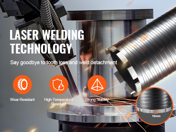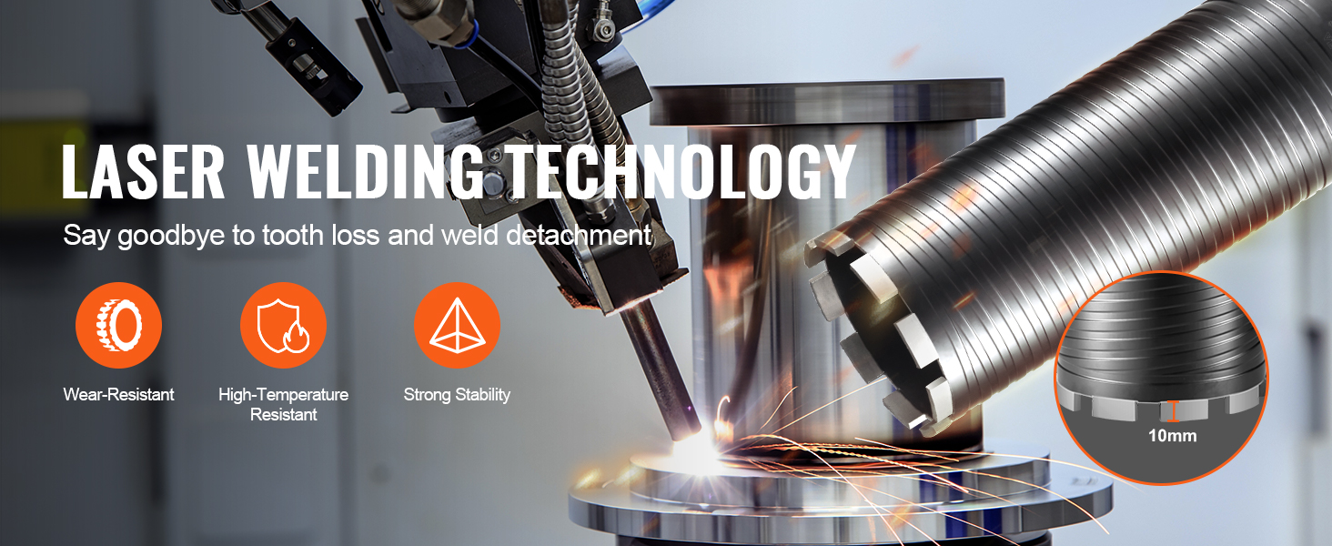 Laserhitsaus lisää timanttiholkkiterän kulutuskestävyyttä ja lämmönkestoa, joten se soveltuu erilaisiin porausolosuhteisiin myös korkeissa lämpötiloissa. Hampaiden irtoamisriski ja hitsaussaumojen pettäminen vähenee, mikä tekee terästä pitkäikäisemmän.