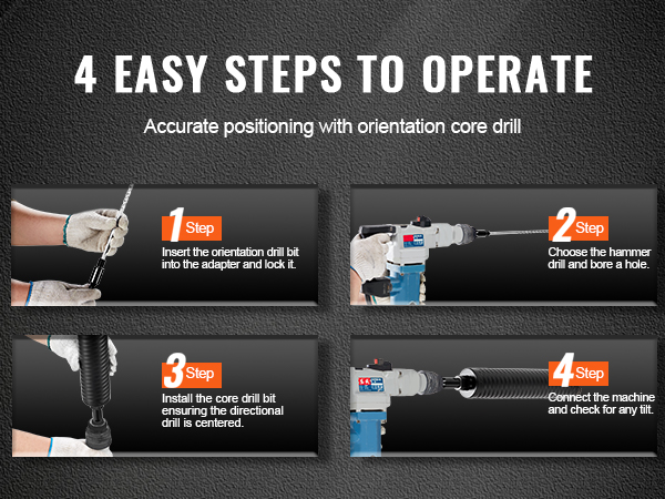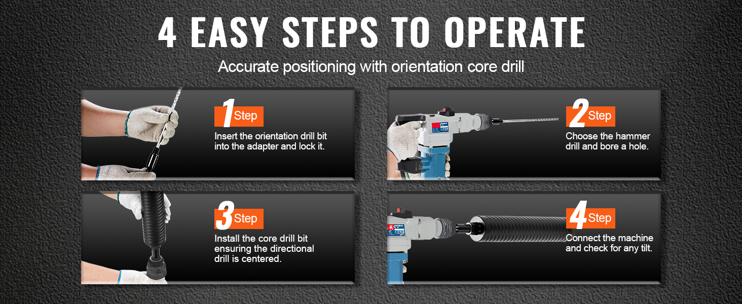 Ohjuri asennetaan adapteriin siten, että porakoneen kallistuskulma vastaa adapterin pultinreiän kulmaa, ja kiristetään tiukasti. Adapteri kiinnitetään huolellisesti holkkiterään. Ohjurin tulee olla keskitetty terään niin, että keskipoikkeama on enintään 1 millimetri.