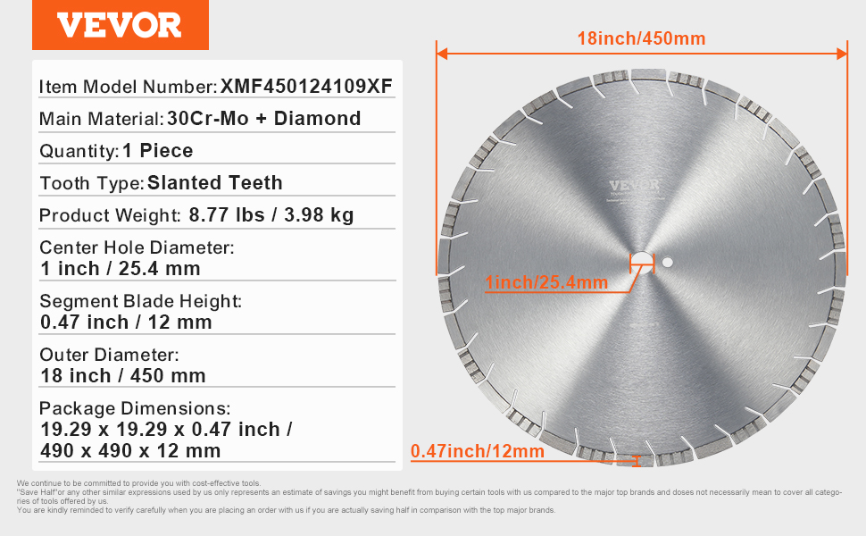 Terä on terävä ja monipuolinen, ja soveltuu ura- ja katkaisutyöhön betonille, laatoille, raudoitetulle betonille, tiilille, marmorille ja muille kivimateriaaleille. Se sopii sekä ammattirakentamiseen että vaativiin kotitalouskohteisiin.
