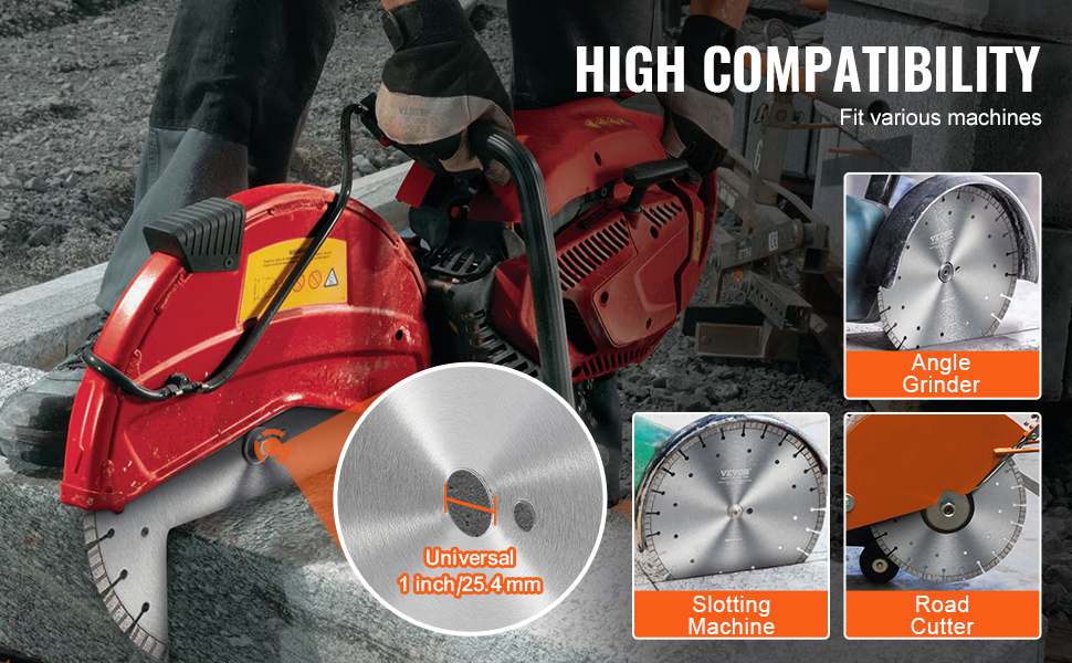 Laikassa on yleismallinen 25.4 mm keskireikä, joka sopii useimpiin markkinoilla oleviin katkaisu- ja betonisahoihin. Se toimii niin työmaa-urien jyrsinnässä kuin laattojen katkaisussa korjaustöissä.