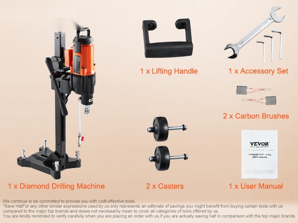 Timanttiporakone 2600W 20–180 mm porauskoko käsikäyttöinen ja telineasennettava