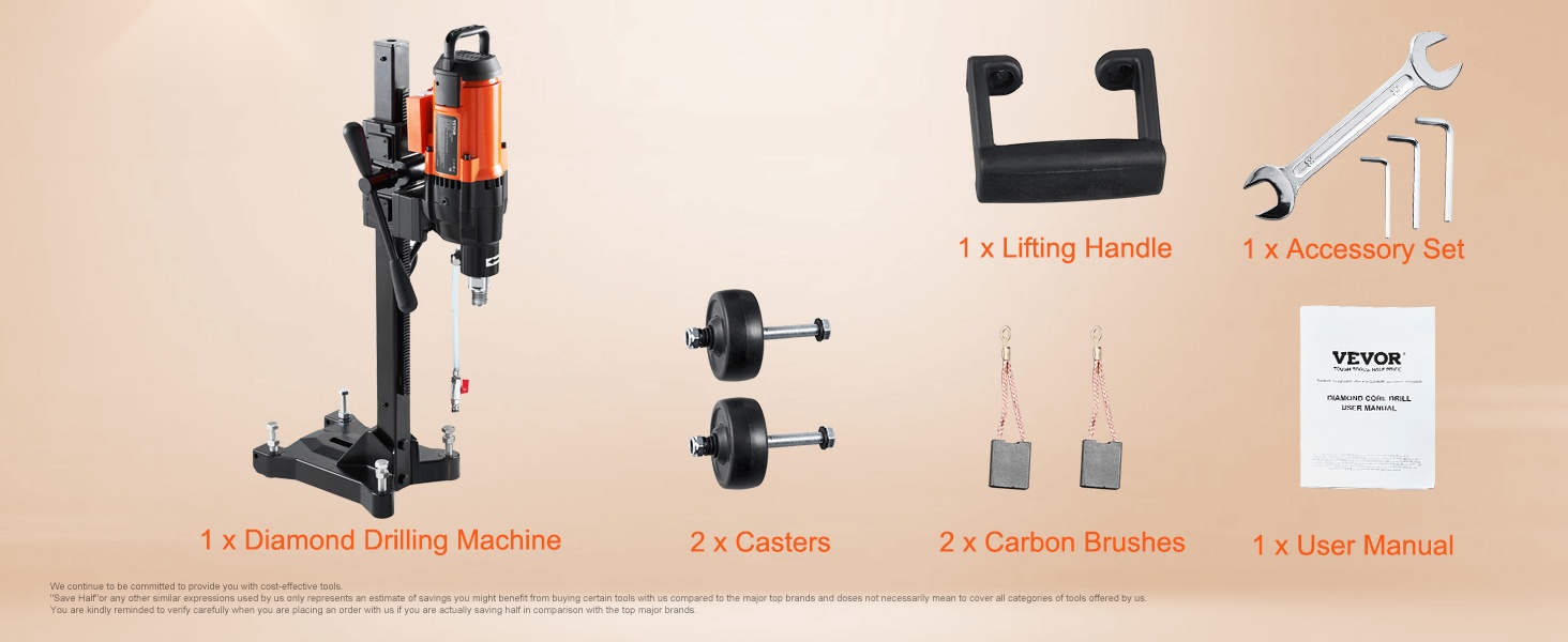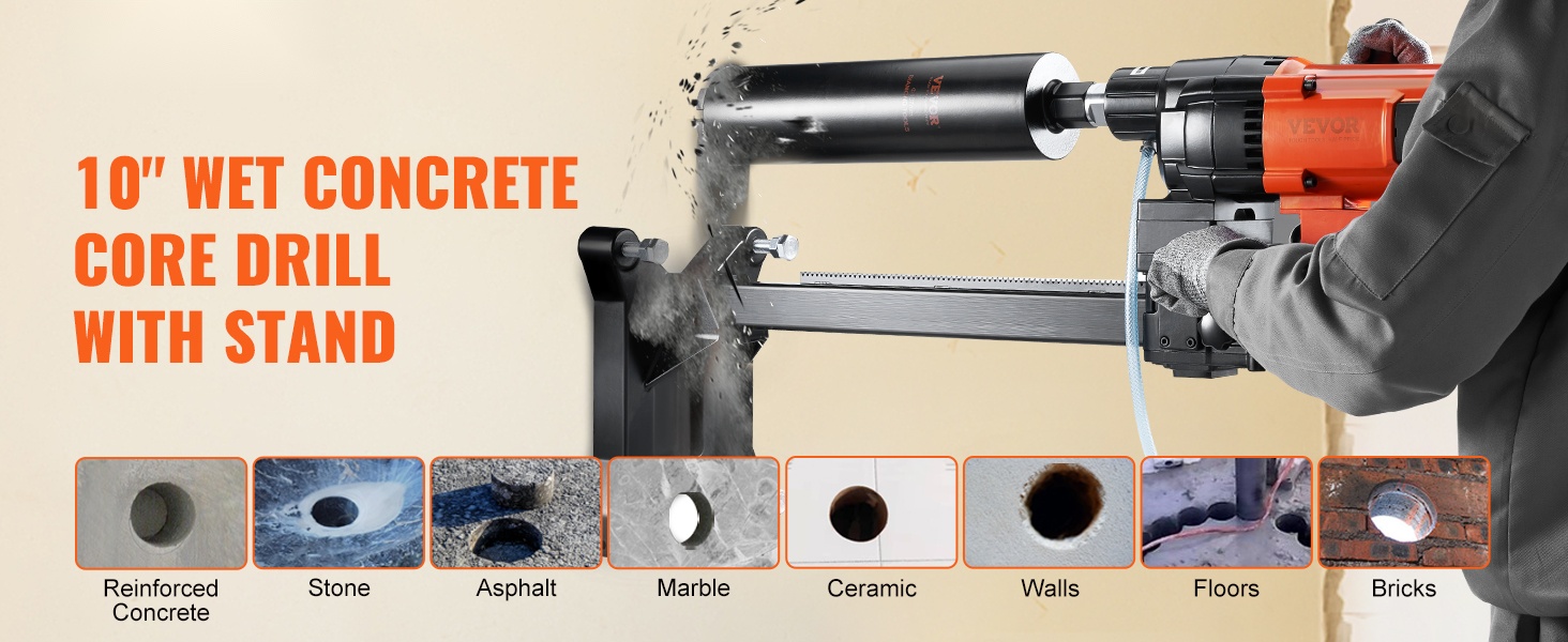 Timanttiporakone 3000W poraushalkaisija 20–200 mm pystytelineellä märkä ja kuivaporaus betonille