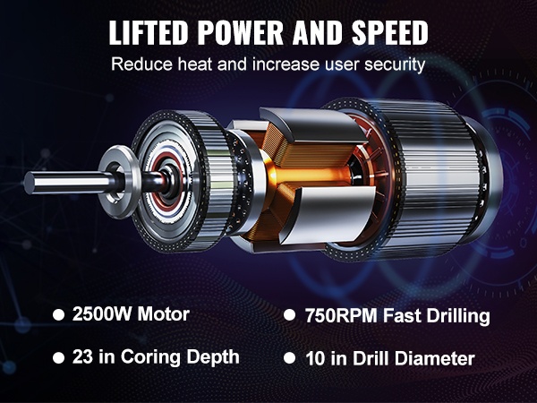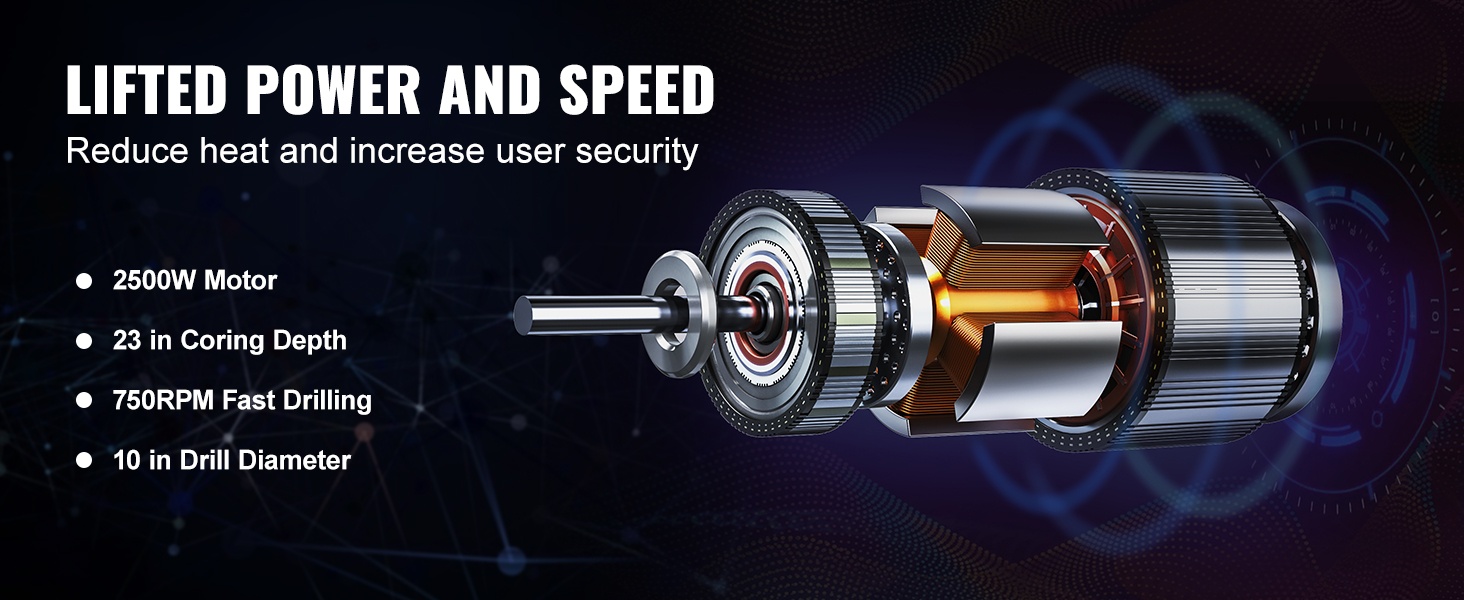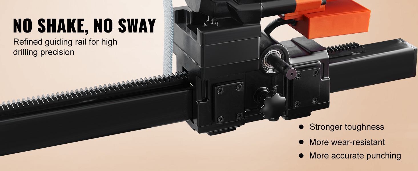 2600W moottori tarjoaa runsaasti tehoa vaativien materiaalien poraukseen. Säädettävä kierrosnopeus auttaa sovittamaan porausnopeuden materiaalin ja työtehtävän mukaan, mikä parantaa hallittavuutta ja työjäljen tarkkuutta.