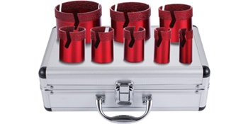 Sarjassa on 5 timanttiporaa (halkaisijat 22/35/40/50/65 mm) sekä 1.4 mm paksuinen timanttisahanterä. M14-kiinnityskierre sopii yleisesti moniin kulmahiomakoneisiin ja vastaaviin työkaluihin.
