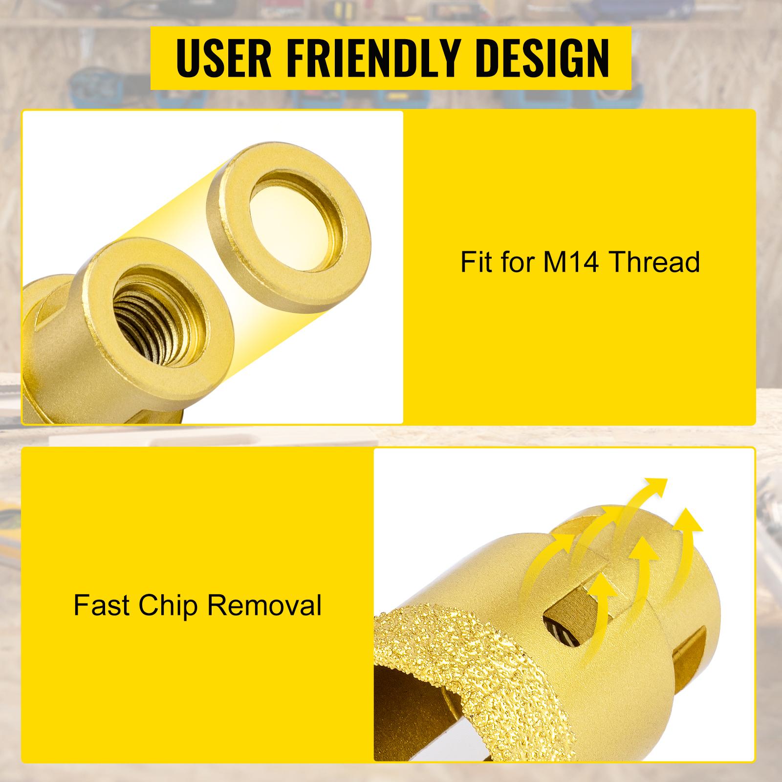 Yleinen M14-kierre sopii useimpiin kulmahiomakoneisiin. Pienet aukot reunassa vähentävät kitkaa ja parantavat leikkuun sujuvuutta ja nopeutta.