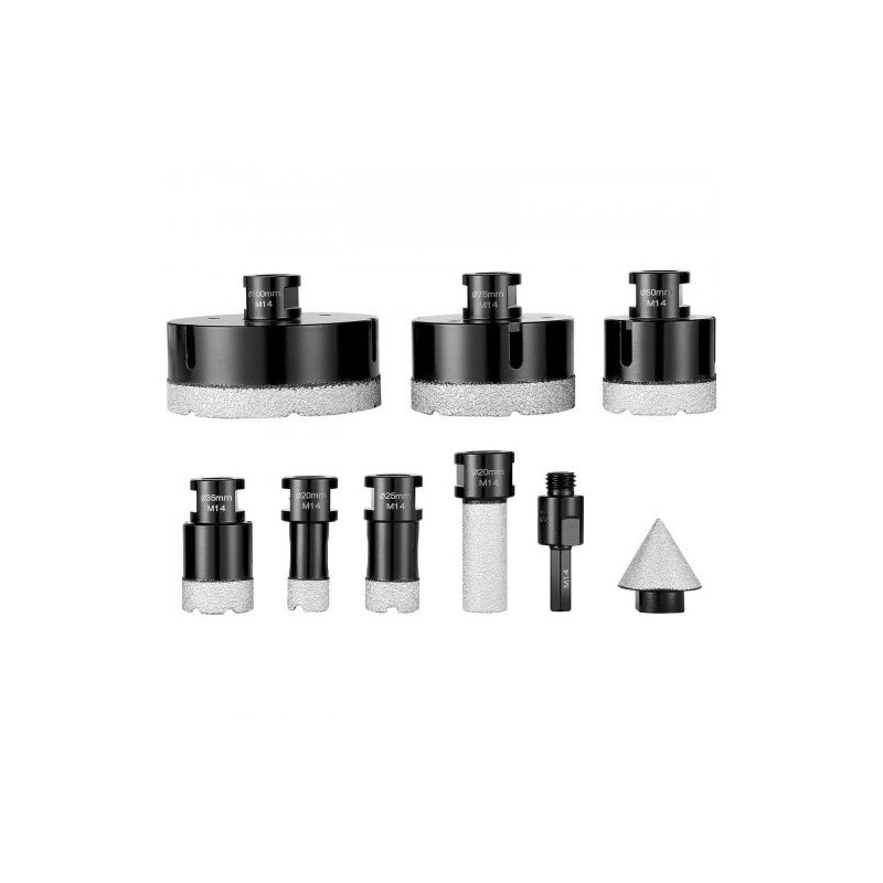 Tämä timanttinen reikäsahasarja on suunniteltu kovien materiaalien tarkkaan ja siistiin poraukseen. Kärkiosan laadukas timanttihiekkapinnoite ja edistynyt tyhjiöjuotostekniikka kestävät korkeita lämpötiloja ja mahdollistavat terävän, tarkan ja tasaisen leikkauksen suurillakin kierrosluvuilla.
