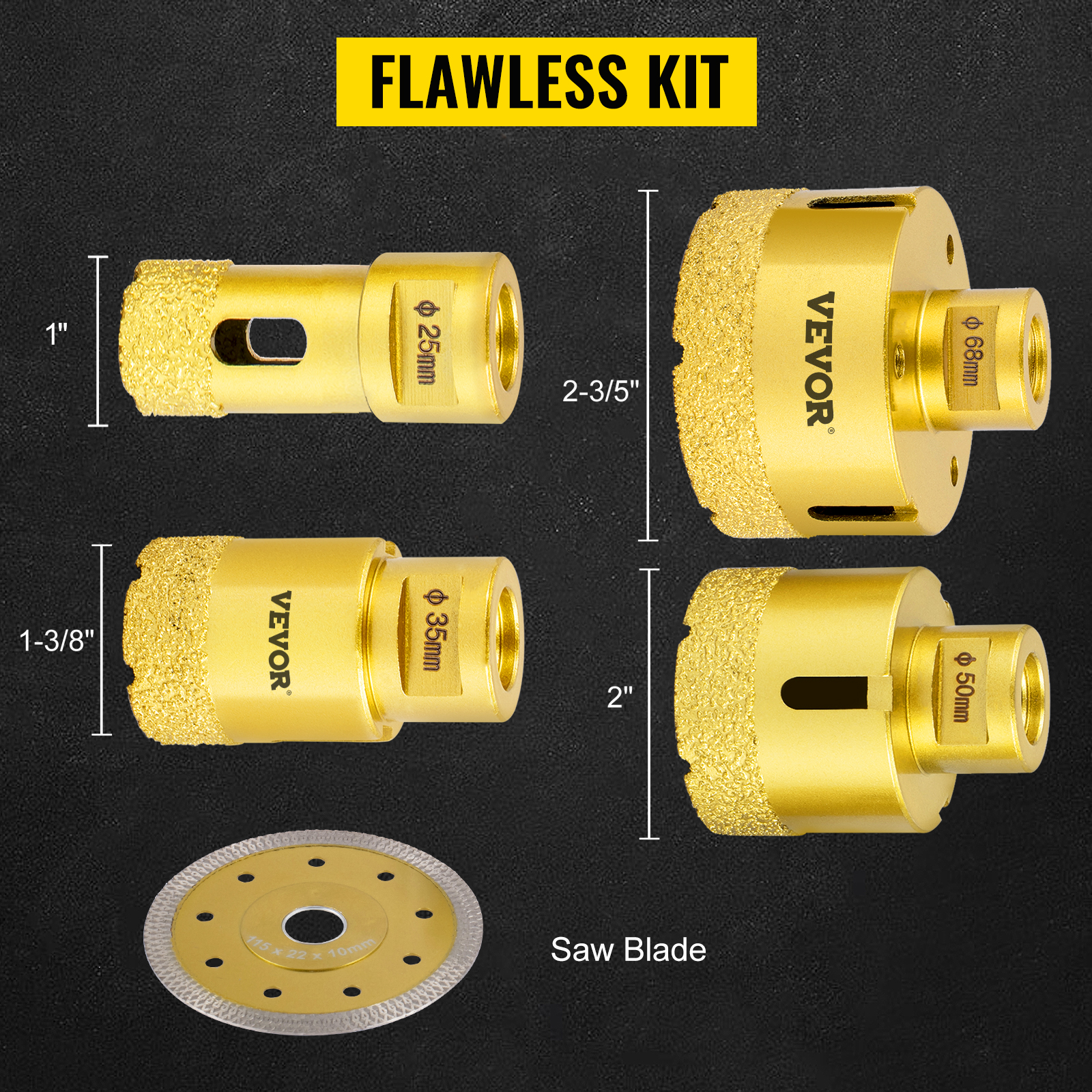 Timanttireikäsahasarja QHKZ4PCS 4 kpl 25/35/50/68 mm laatta keramiikka marmori kivi säilytyslaukulla
