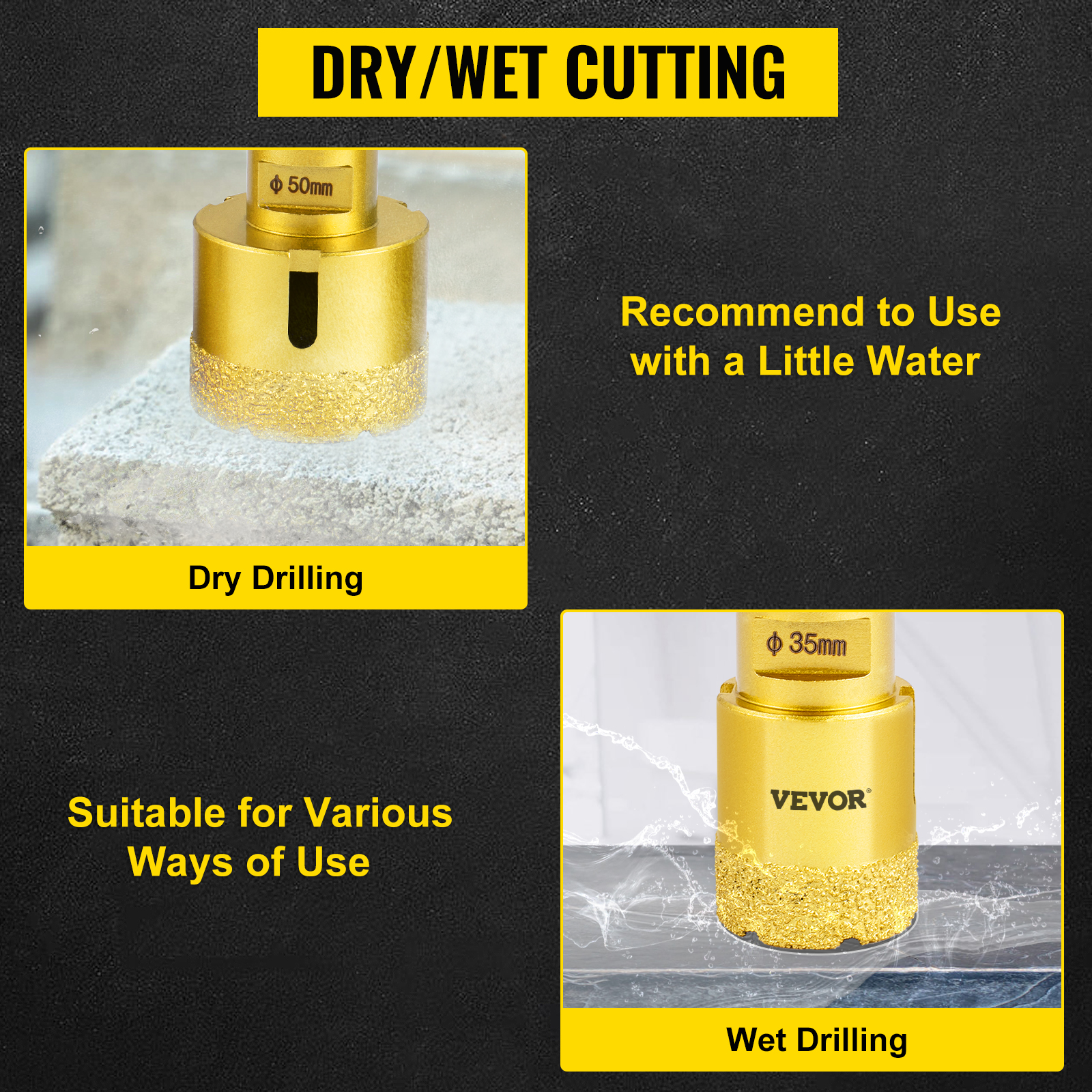 Timanttireikäsahat on suunniteltu kovien materiaalien, kuten keramiikan, posliinin, marmorin, muuratun rakenteen ja graniitin, poraamiseen. Soveltuu sekä asennus- että remonttitöihin.