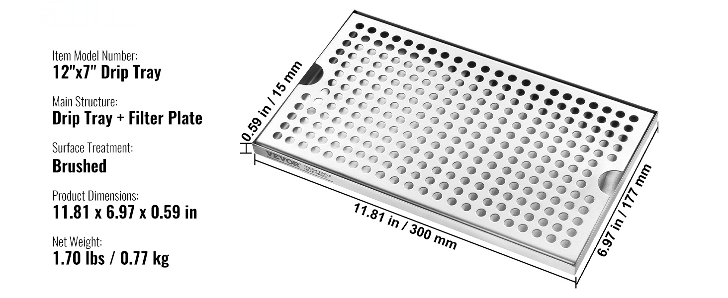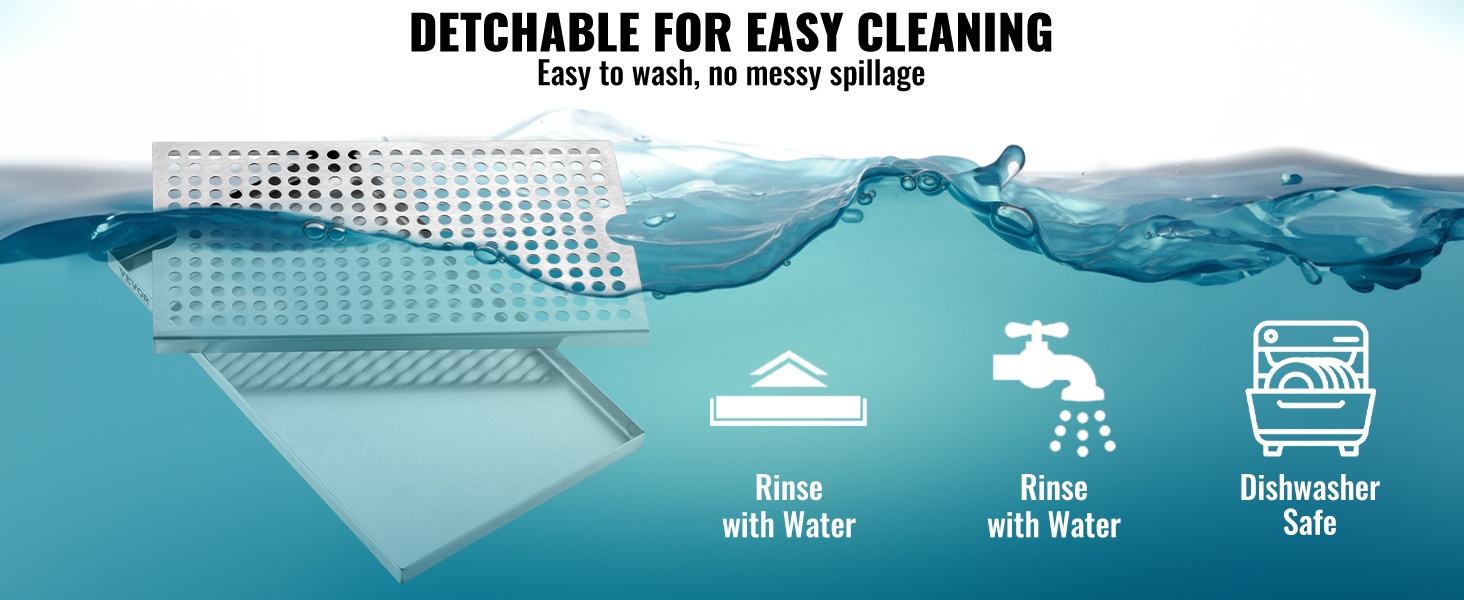 Tämä tiputusastia auttaa pitämään tiskin kuivana ja siistinä. Neljä liukumista estävää kumityynyä pitävät astian tukevasti paikoillaan, ja sileät, pyöristetyt reunat tekevät käytöstä turvallista. Ruoan kanssa kosketukseen sopivasta ruostumattomasta teräksestä valmistettu ja irrotettavalla kannella varustettu tippa-allas sopii hyvin oluthanan tai espressokoneen alle.