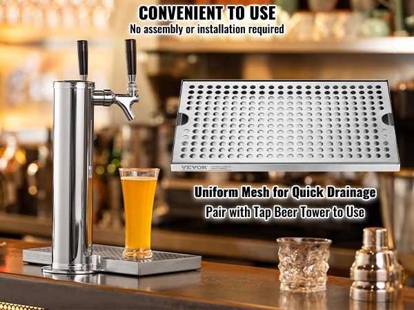 Tippa-allas sopii useimpiin yksi- ja kaksihanaisiin oluttorneihin, ja tilaa riittää kahdelle olutlasille. Se toimii hyvin ravintoloissa, kotibaareissa, keittiöissä ja pubeissa, ja auttaa pitämään työskentelyalueen siistinä.