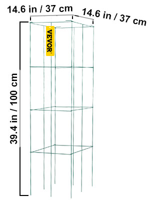 Pakkauksessa on 3 kpl 3-tasoista tukea. Kunkin tuen koko on 37 x 37 x 100 cm, josta jaloissa 26 cm maahan upotettavaa osaa. Jopa 140 cm korkeat kasvit voidaan tukea vakaasti.