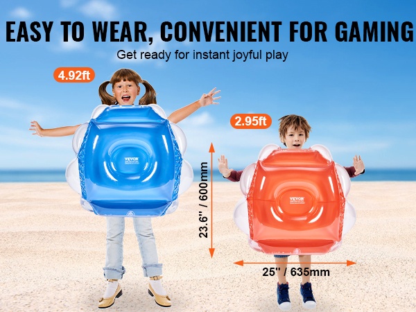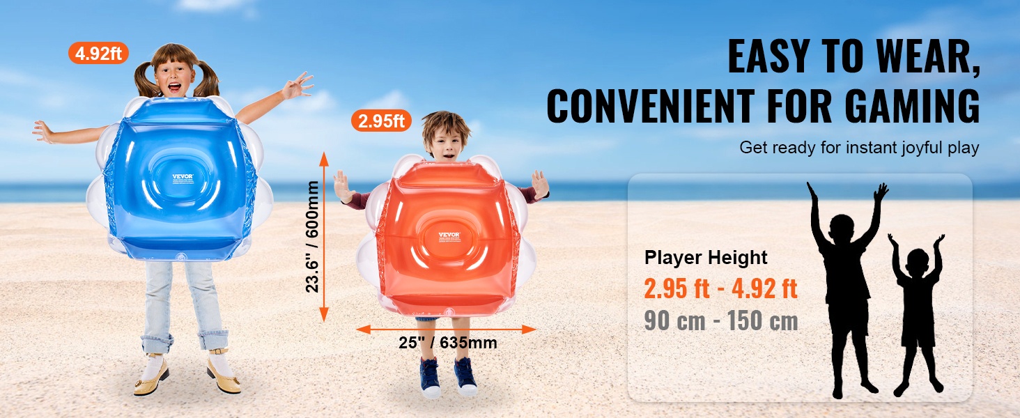 Helppokäyttöinen rakenne tekee pallon pukemisesta nopeaa ja vaivatonta. Se sopii teini-ikäisille ja aikuisille, joiden pituus on 4.9 ft–6 ft. Näin sama pallo palvelee useampia käyttäjiä erilaisissa peleissä ja aktiviteeteissa.