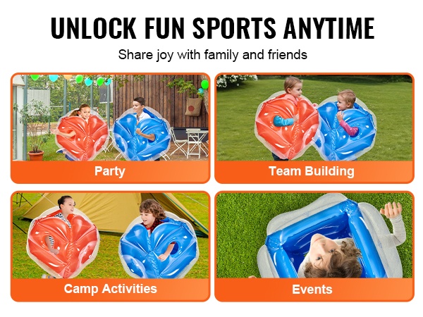 Kestävä ja paksusta 0.8mm PVC-materiaalista valmistettu 5FT ulkohalkaisijan törmäilypallo tarjoaa turvallista ja vauhdikasta liikkumista ulkoleikkeihin ja peleihin. Tällä kuplajalkapallolla järjestät helposti vauhdikkaita pelejä ja hauskoja hetkiä eri ikäryhmille.
