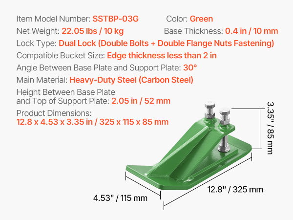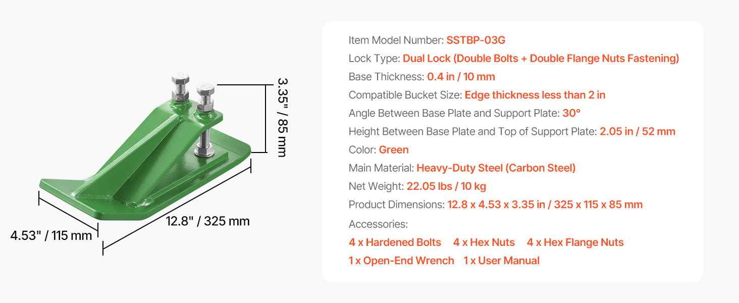 Traktorin kauhan reunasuoja SSTBP-03G, teräs, vihreä, 2 kpl lumitöihin ja soran levitykseen