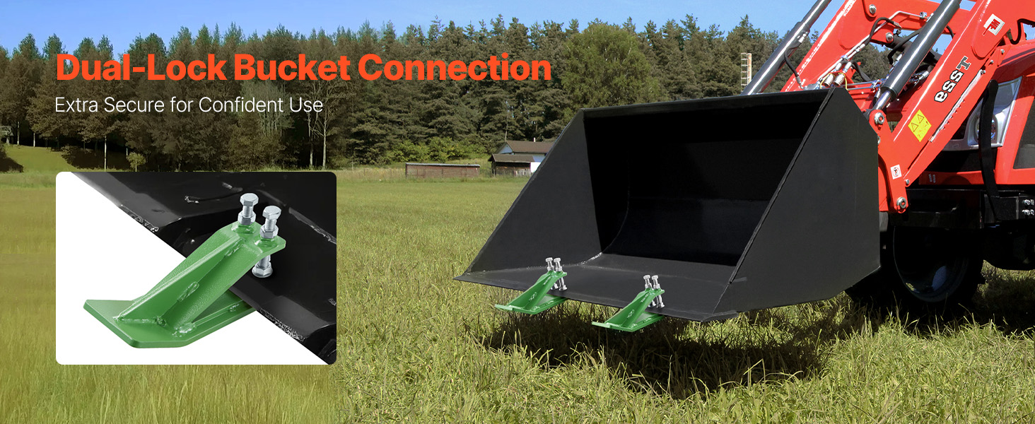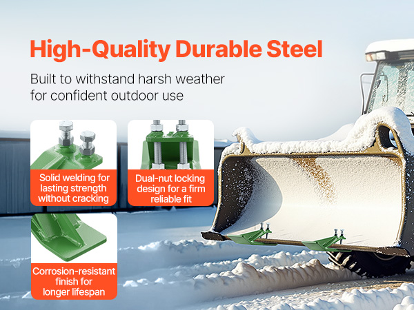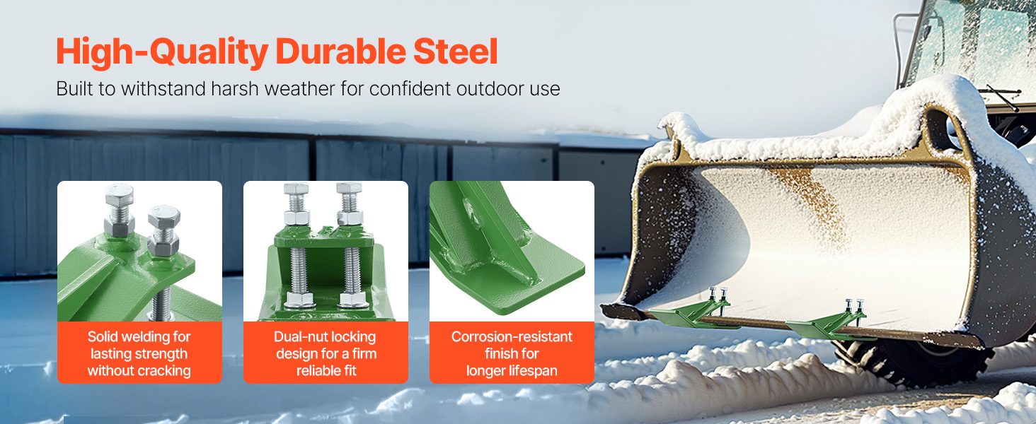 Traktorin kauhan reunasuojat auttavat suojaamaan pihaa, ajotietä ja muita pintoja lumitöissä ja muussa kauhakäytössä. Suojat on valmistettu laadukkaasta teräksestä ja jauhemaalattu, mikä parantaa kestävyyttä ja vähentää kulumista. Kaksinkertainen lukitus pitää suojan tiukasti paikallaan ja vähentää löystymisen riskiä käytön aikana.