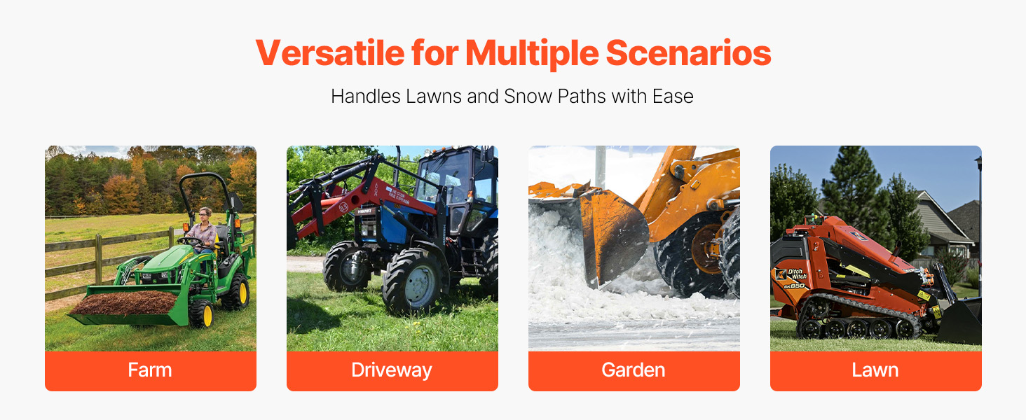 Nämä kauhan reunasuojat sopivat hyvin maatiloille, ajoteille, puutarhoihin ja nurmialueille. Ne auttavat pienentämään pintavaurioiden riskiä, kun poistat lunta, lehtiä tai muuta irtoroskaa tai levität soraa ja muuta materiaalia.