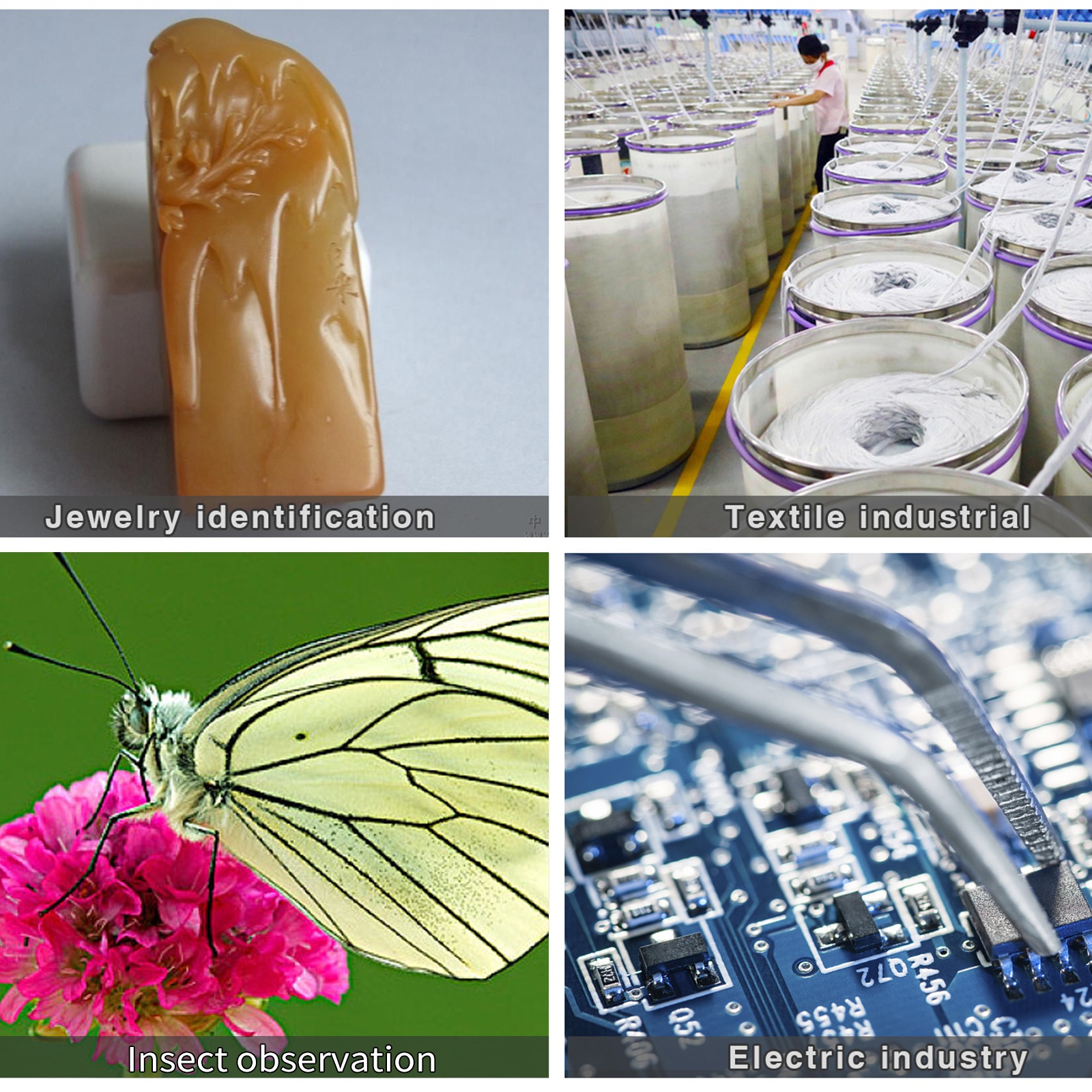Sopii sähkö- ja elektroniikkateollisuuteen, hyönteistutkimukseen, tieteelliseen tutkimukseen, korujen tunnistukseen sekä tekstiiliteollisuuden laadunvalvontaan.
