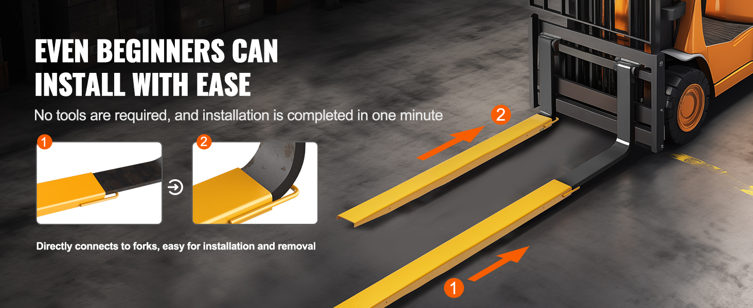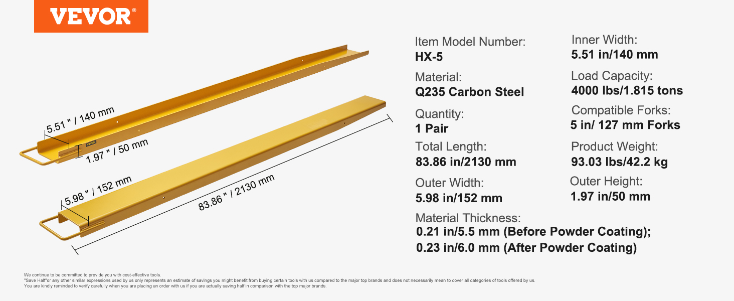 Trukin lavahaarukan pidennykset HX-8, 2440 mm, leveys 165 mm, Q235-hiiliteräs, 1 pari, keltainen
