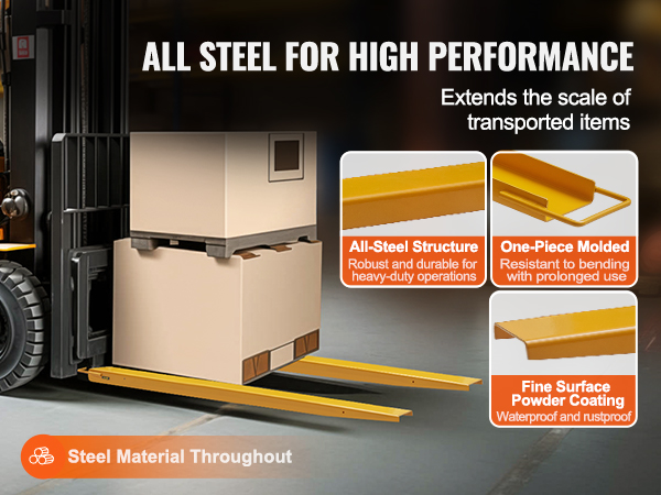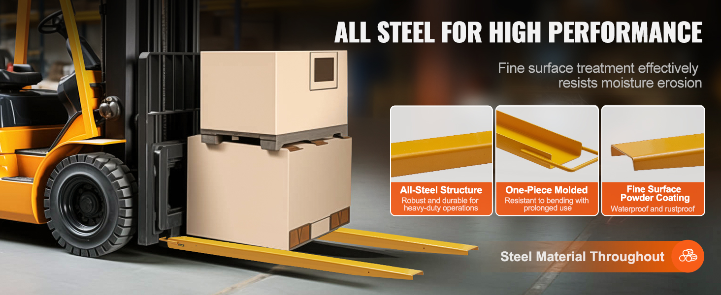 Jatkopiikit muuttavat trukin peruspiikit pidemmiksi ja monikäyttöisemmiksi. Pulverimaalattu pinta suojaa vettä ja ruostetta vastaan, ja vankka hiiliteräsrakenne kestää kovaa käyttöä varastoissa, tuotannossa ja työmailla.