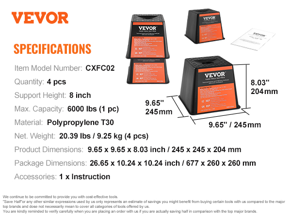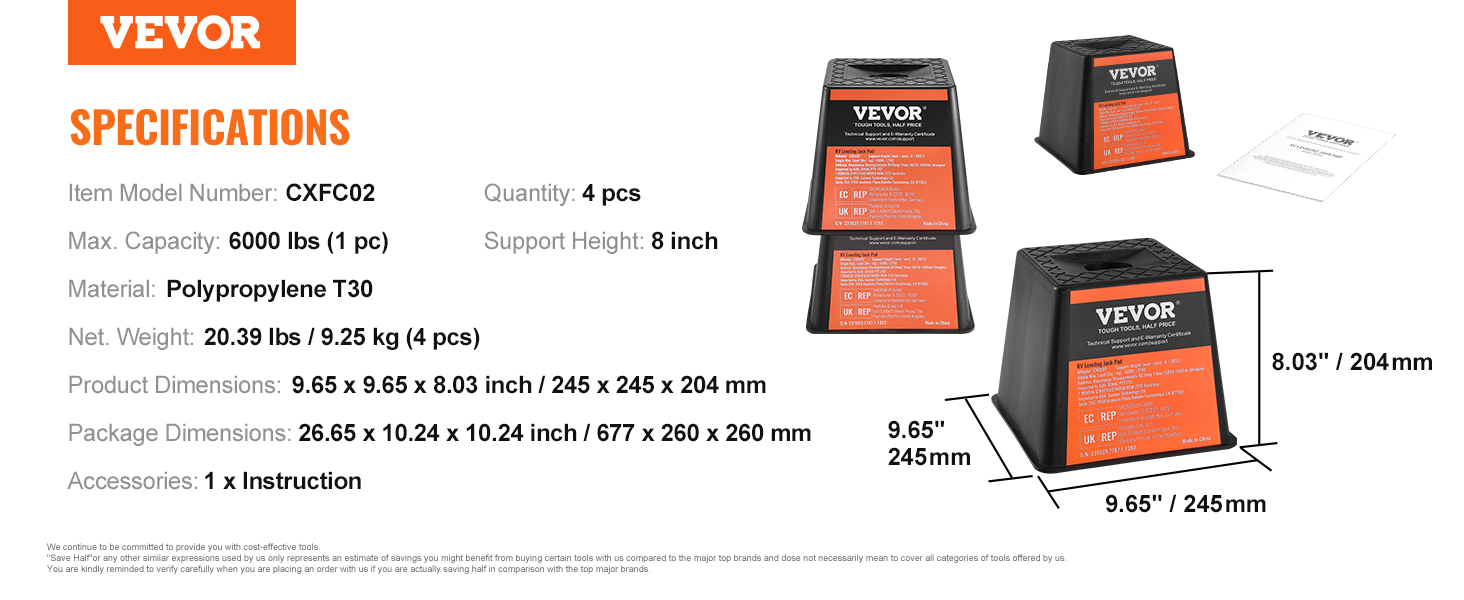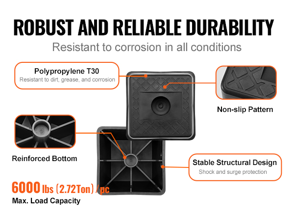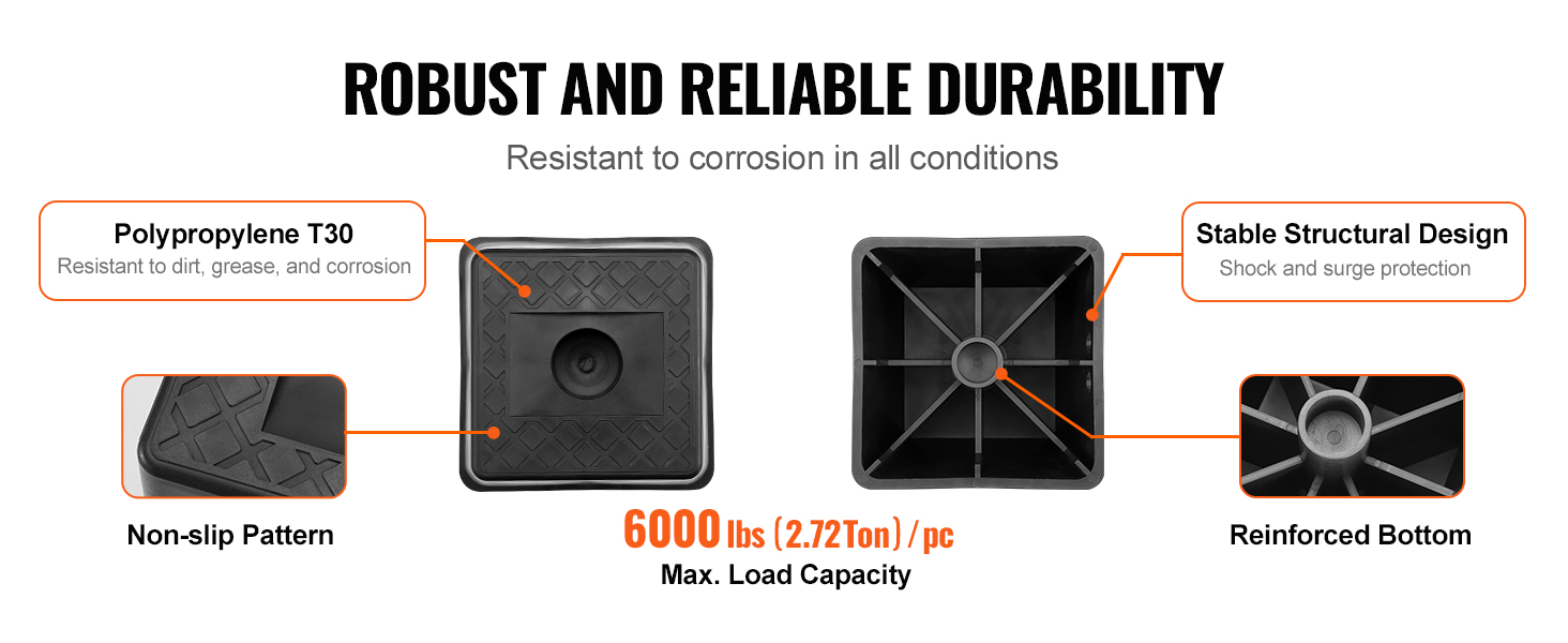 Vankka polypropeenimateriaali parantaa vakautta ja käyttöikää. Palikat tarjoavat luotettavan tuen erilaisille alustoille ja auttavat pitämään ajoneuvon vakaana pitkään.