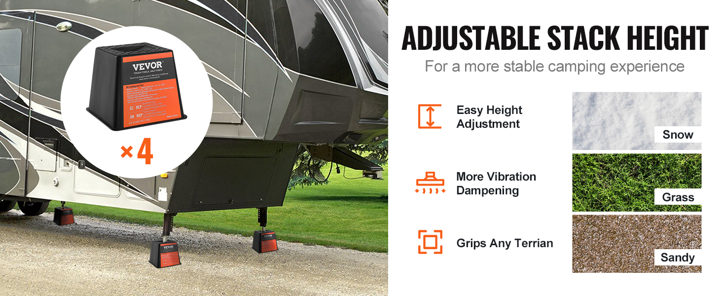 Nämä tukijalkapalikat helpottavat matkailuvaunun, asuntovaunun tai muun perävaunun nopeaa ja turvallista tasausta myös epätasaisessa maastossa. Tukipalikat parantavat ajoneuvon vakautta pysäköinnin aikana ja lisäävät käyttömukavuutta leiriytyessä.