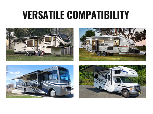 - Sopii monille ajoneuvotyypeille, kuten matkailuautoille, asuntovaunuille, tukijaloille, jaloille, jaloilla varustetuille jaloille ja 5th wheel -perävaunuille.