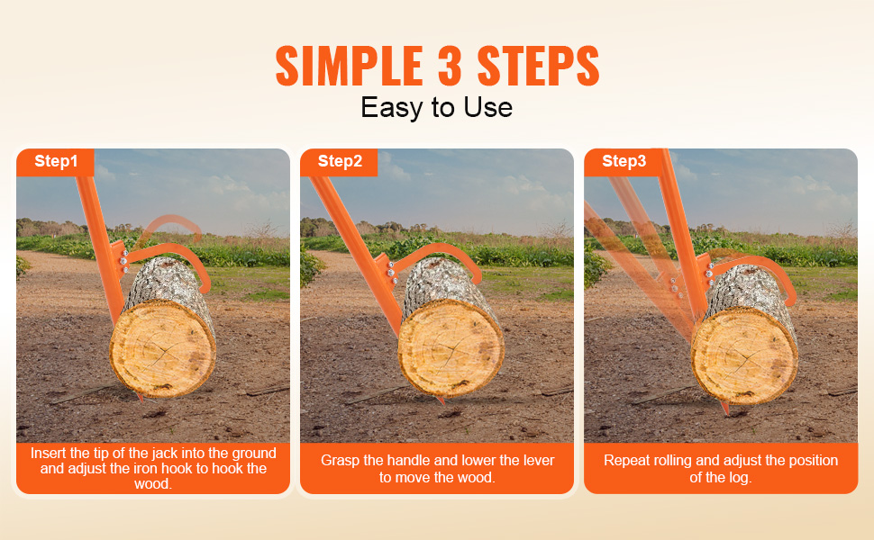 Kiinnitä tukinkääntäjä tukkiin koukulla, käytä vartta vipuna ja paina kahvasta, jotta saat puun rullaamaan tai nousemaan irti maasta. Työkalu helpottaa tukin asennon säätämistä turvallisempaa ja tarkempaa sahausta varten. Soveltuu hyvin metsätöihin, polttopuiden tekoon ja yleiseen puun käsittelyyn.