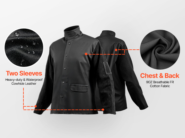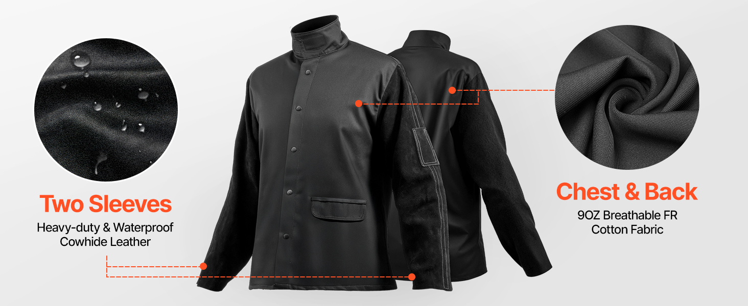 - Raskaat jaetusta naudannahasta valmistetut hihat ja 9 oz tulenkestävä puuvillarunko