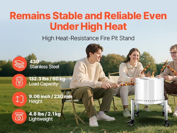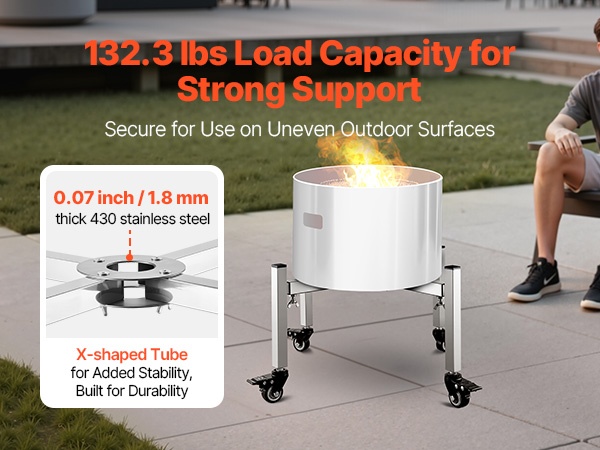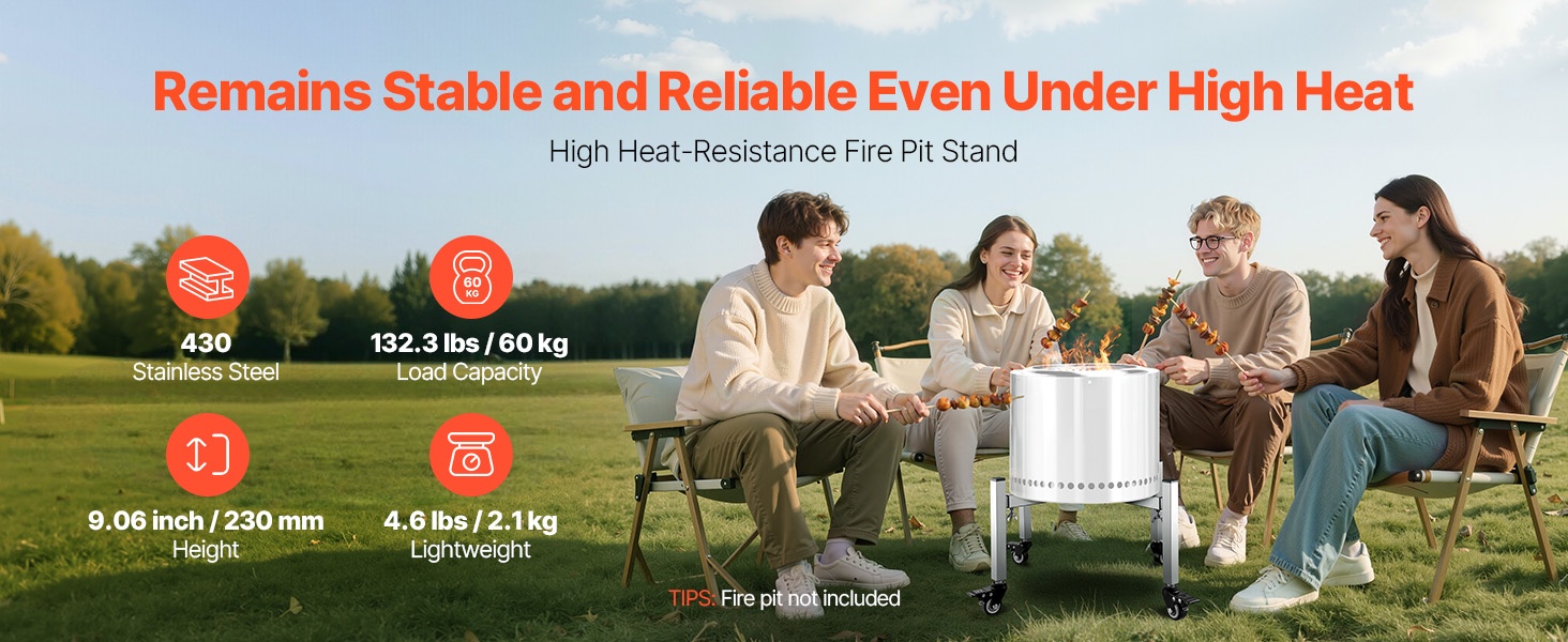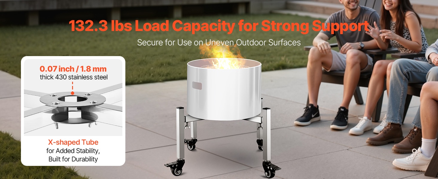 Valmistettu kestävästä 430-ruostumattomasta teräksestä, joka sietää korkeita lämpötiloja ja ulkokäyttöä ilman vääntymistä tai ruostumista. Vahvistettu rakenne takaa vakaan tuen nuotiolle niin pihalla, terassilla kuin retkilläkin.